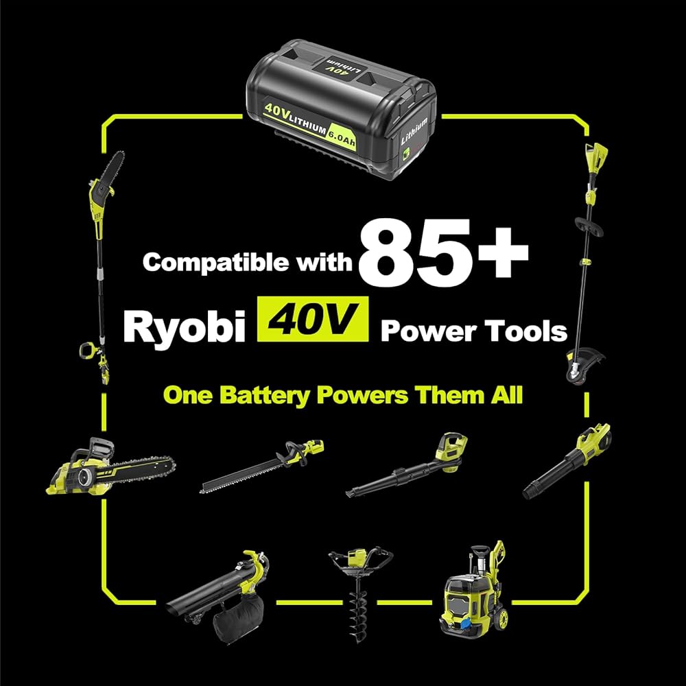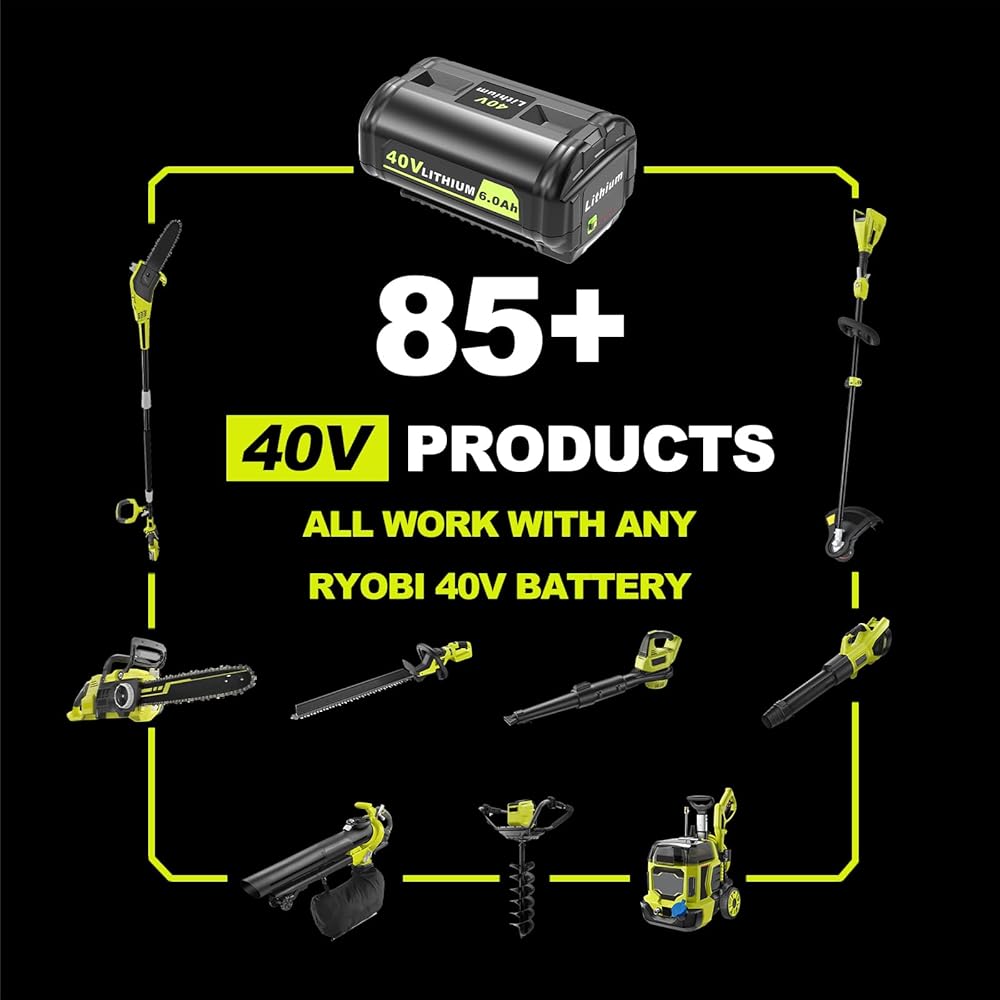 40V 6000mAh Lithium-Ion Battery Replacement for Ryobi 40v Battery, OP4020, OP4060, OP4040, OP4050. High Capacity Compatible with Ryobi 40-Volt HP Cordless Power Tools and Chargers