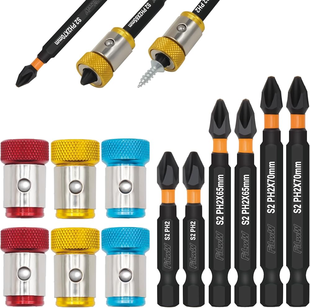 【Precision Crafted Tool】Ph2 screwdriver bit set of 6 Pcs different specifications and 6 Pcs strong magnetic screw ring, which can help the bit firmly absorb the screws during use to prevent them from falling and improve work efficiency.