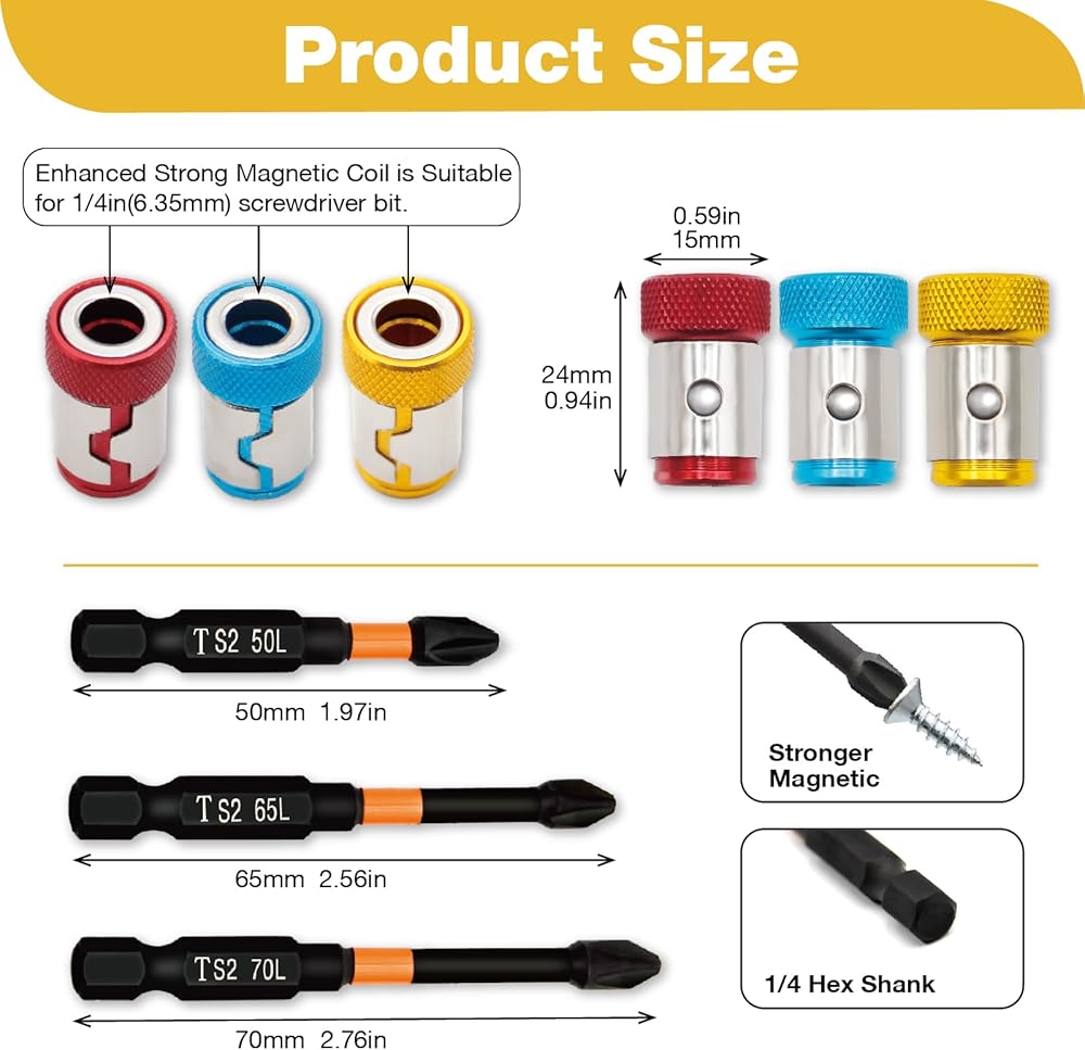 【Multifunctional Use】Screwdriver bit and magnetic screw ring combination can provide excellent performance in home improvement, engineering construction, automobile repair and electronic product assembly. They are suitable for the installation and removal of various screws, especially in hard-to-reach places, ensuring efficient and precise operation.
