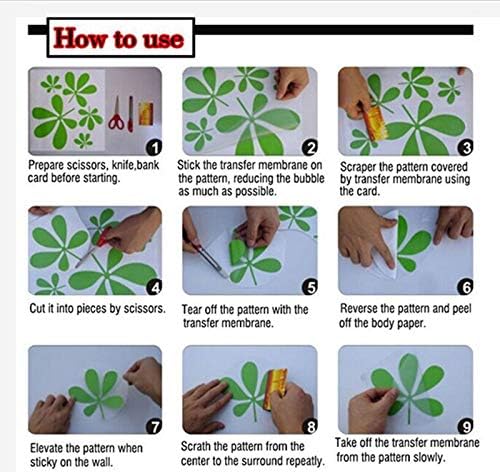 1.Clean wall of any dust or dirt. Then wait until completely dry. 2.Stick in accordance with the picture or DIY in your own idea. 3.Carefully place stickers flatly in desired location. If the result is satisfactory for you, stick firmly to the surface then starting from the center press and smooth onto wall.