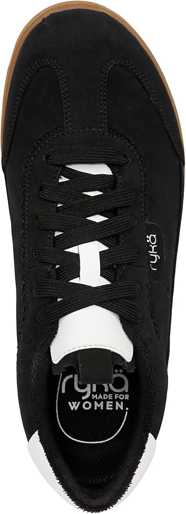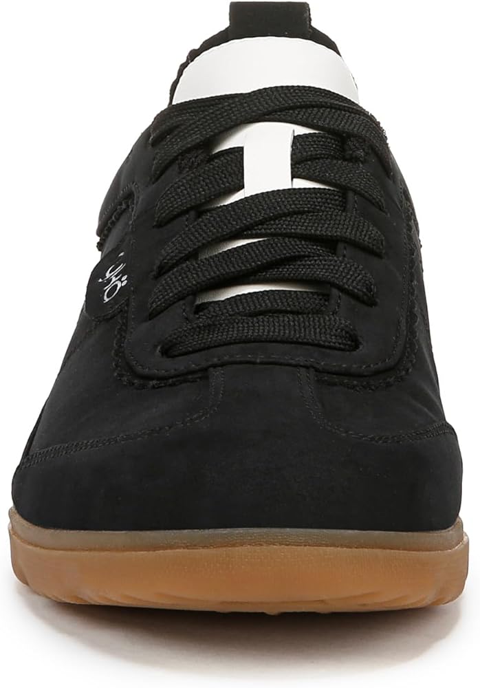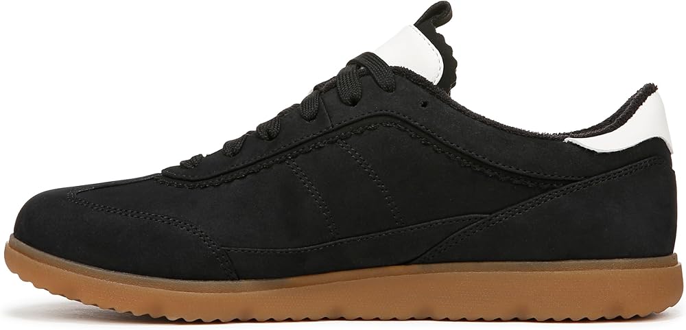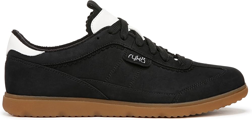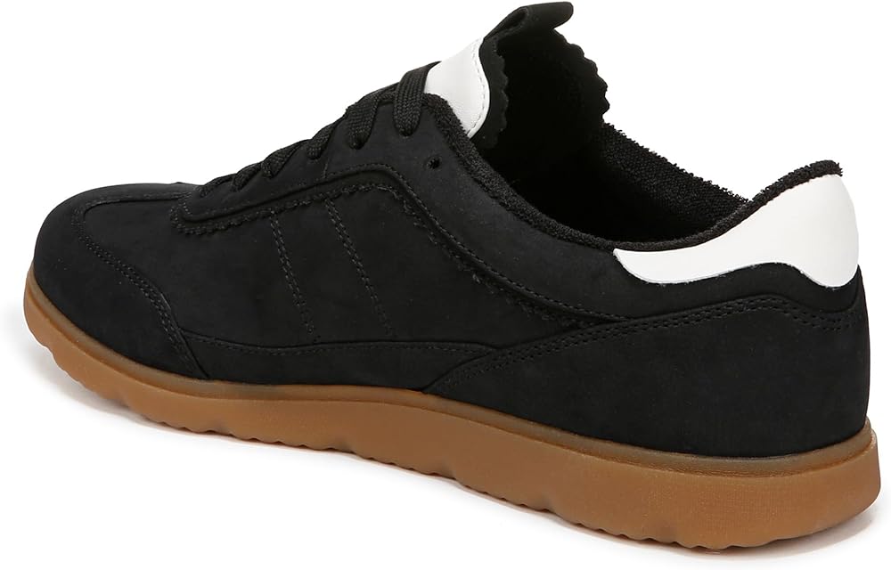 Make getting dressed and feeling comfortable look easy in these casual sneakers for women with a now-trending gum sole. BEST FOR: Casual walking + everyday wear. PERFORMANCE TECH: Exceptional cushioning throughout for standout comfort. MADE FOR WOMEN FIT: Womens casual sneakers designed for a woman's unique foot shape, muscle movement, and build with a narrower heel, roomier toe, and softer foot cushioning. MATERIALS: Faux suede with scalloped trim + Terry cloth collar lining. CLOSURE: Lace-up front with pull tab at the tongue for a secure fit. INSOLE: Anatomical insole with extra arch support + heel support made from partially recycled materials. OUTSOLE: Rubber gum sole partially made with post-consumer recycled materials. WEIGHT: 262 g/9.2 oz per shoe. HEEL-TO-TOE DROP: 8 mm.
