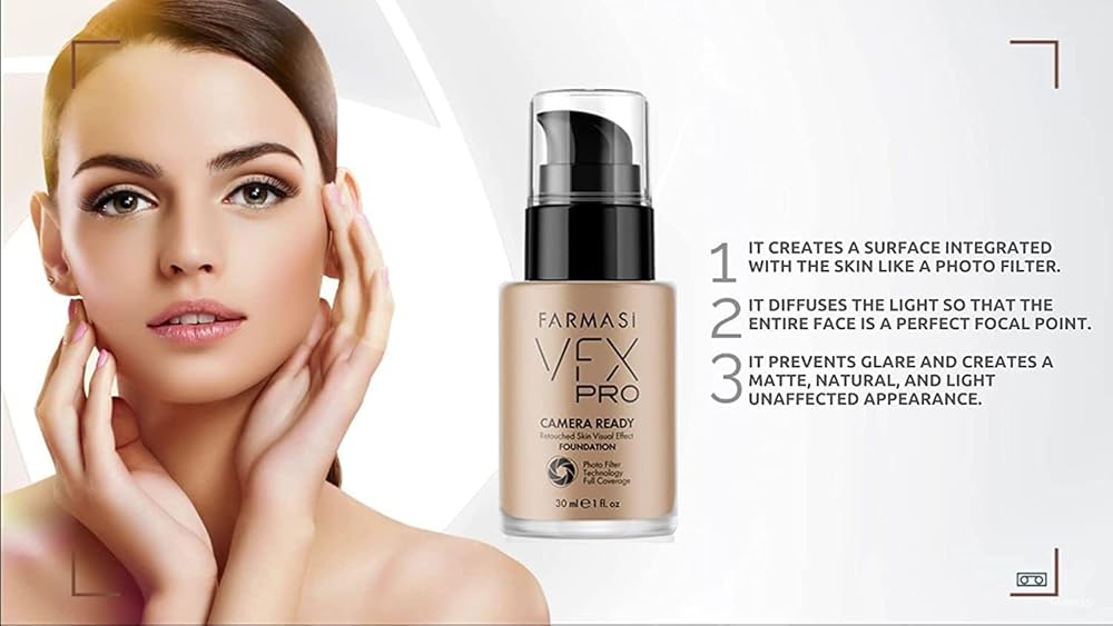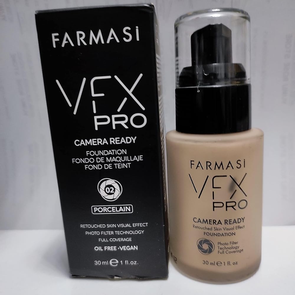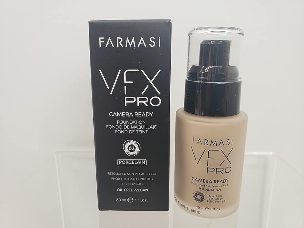 FARMASi VFX Pro Camera-Ready Liquid Foundation, Full Coverage Matte Finish, Lightweight Long-Wear, Oil-Free with Pore-Refining Sea-Water Formula, Non-Oxidizing Finish, 1 Fl Oz, 05 Porcelain