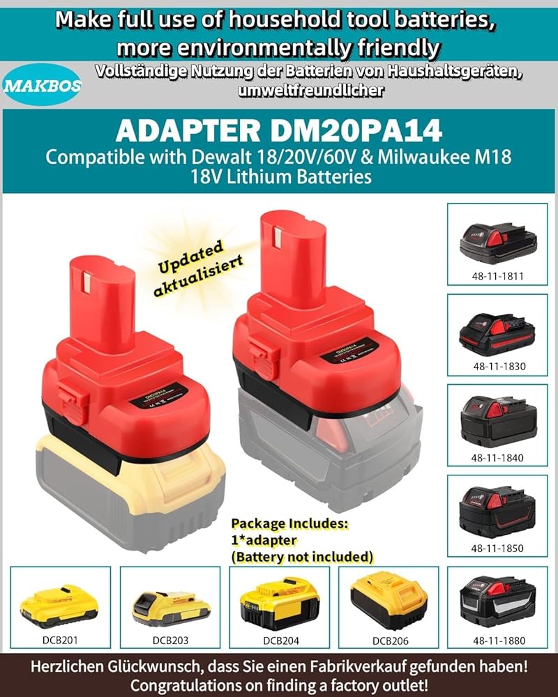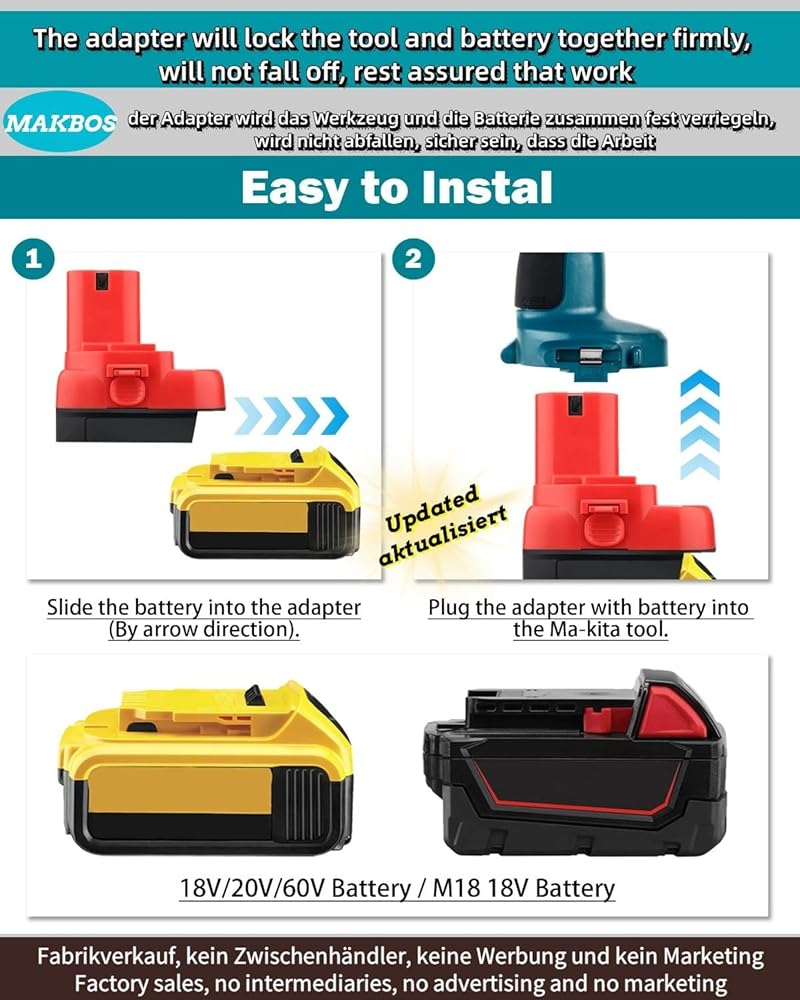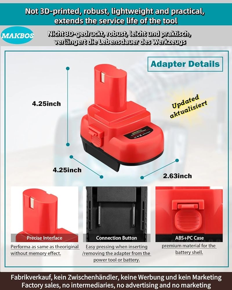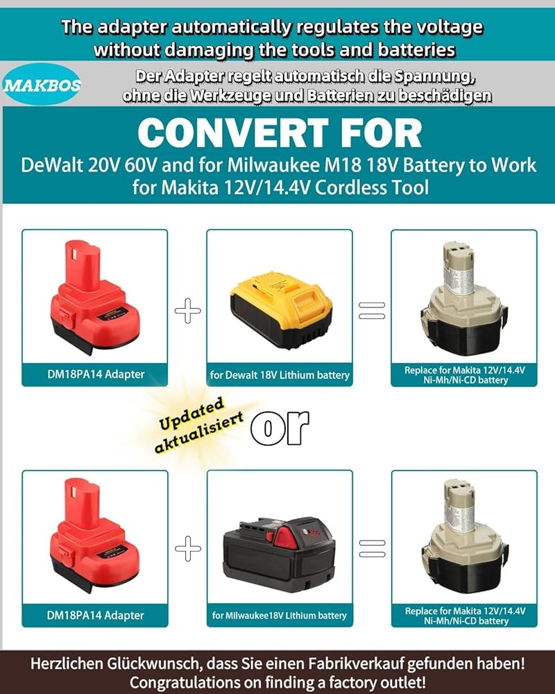 Battery Adapter for Makita 12V Cordless Power Tools,for Dewalt 20V for Milwaukee 18V M18 Lithium-Ion Battery Convert to for Makita12V Ni-Mh Battery,DIY Battery Adaptor(Only adapter)(Only adapter),Replacement Battery Compatible with Makita 12V Battery 1220 1222 1233 1200 1201 1234 1235 192598-2 PA12, 6213d 6217d 6227d 6313d,12V Ni-MH Battery