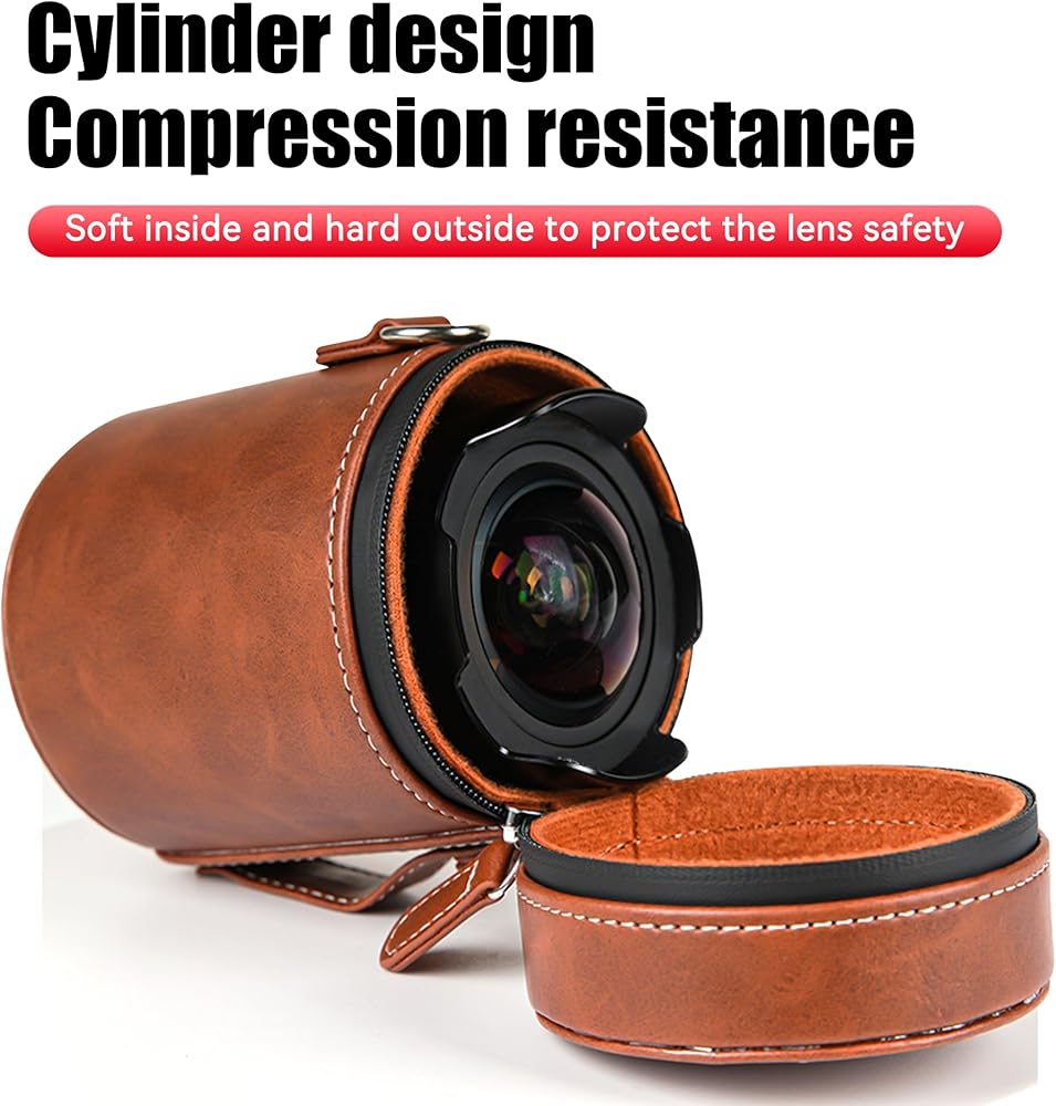 【Cylinder design】: 7artisans leather protective barrel is pressure-resistant and shock-resistant, soft inside and hard outside, protecting the lens safety.