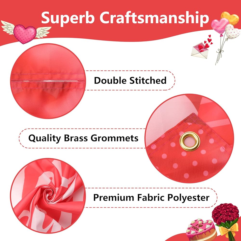Durable Material: Our valentines day backdrop is double-stitched, has 4 high quality brass grommets to provide lasting strength, not easy to be torn so that it can be hung both indoor and outdoor.