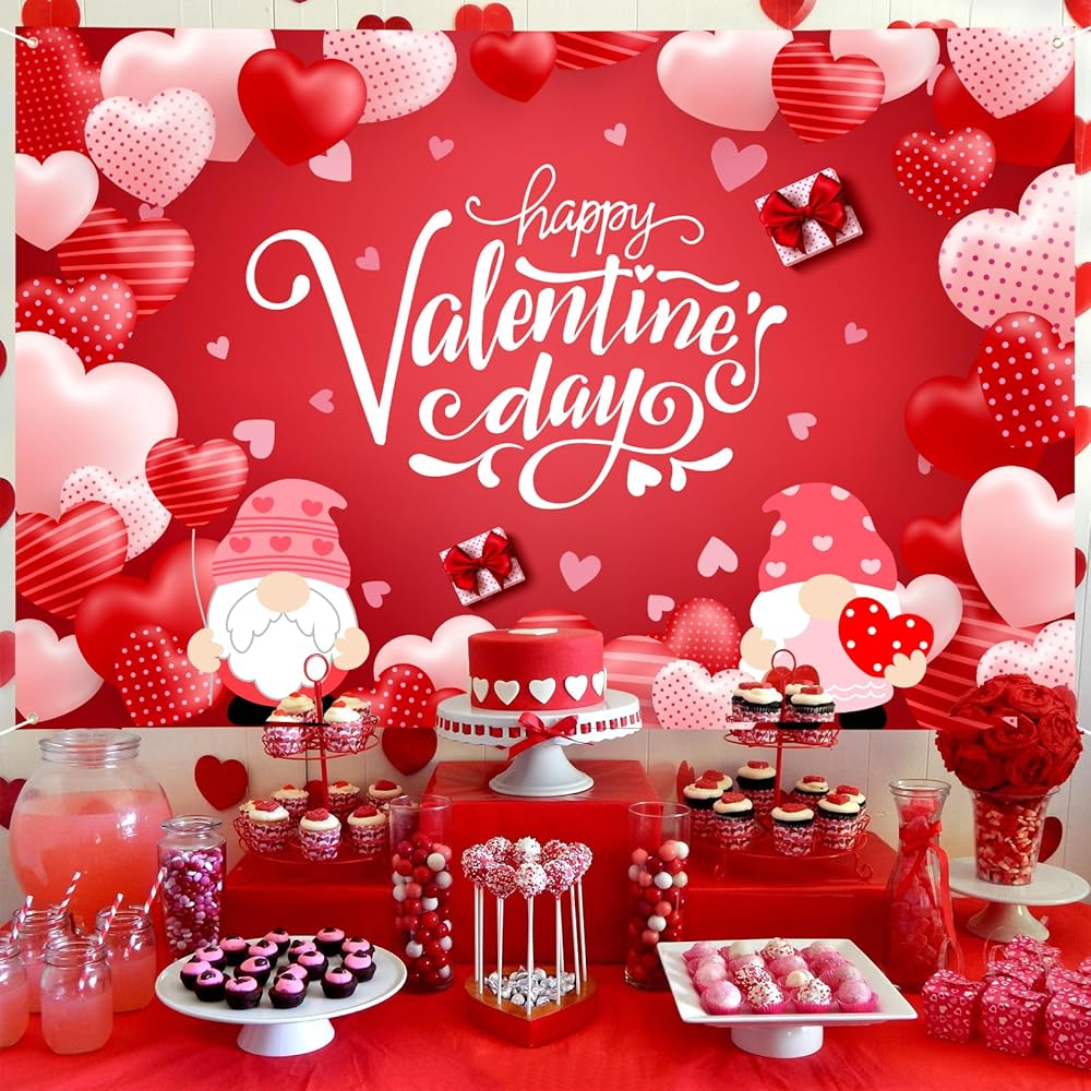 Vivid Color: This valentines day party decoration has an interesting design with red hearts gnomes romantic pattern, full of holiday atmosphere. Using advanced printing technology that the backdrop can be seen brightly and clearly.
