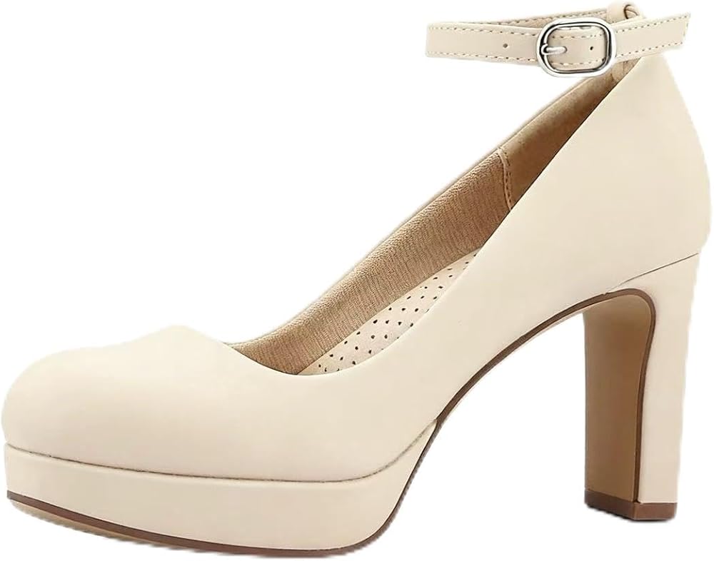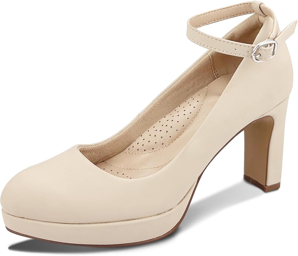 Close Toe Classic High Heels Platform High Heels Round Toe Comfortable Low Platform Mary Jane Dress Pumps Shoes Ankle Strap Shoes for Casual Work Wedding