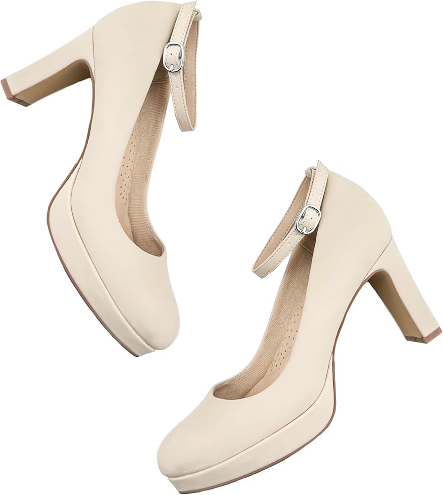 Adjustable Ankle Strap: This pumps shoes has an adjustable ankle strap to ensure that your feet fit well. The front platform base will provide you comfort and support whether standing or walking for a long periods.
