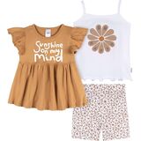 Get your little one ready for sunny days with this adorable 3-piece set! Made primarily from soft cotton with just the right amount of stretch, this set includes two shirts and matching shorts for fun mix-and-match possibilities. The first shirt features cute ruffled sleeves and a button at the back of the neck, while the second offers a classic short sleeve style. The matching shorts come with a comfort-stretch waistband for a secure fit that keeps up with your baby's busy day. With a playful green and yellow color scheme and fun lemon prints, this set is perfect for fresh, breezy spring and summer outfits!