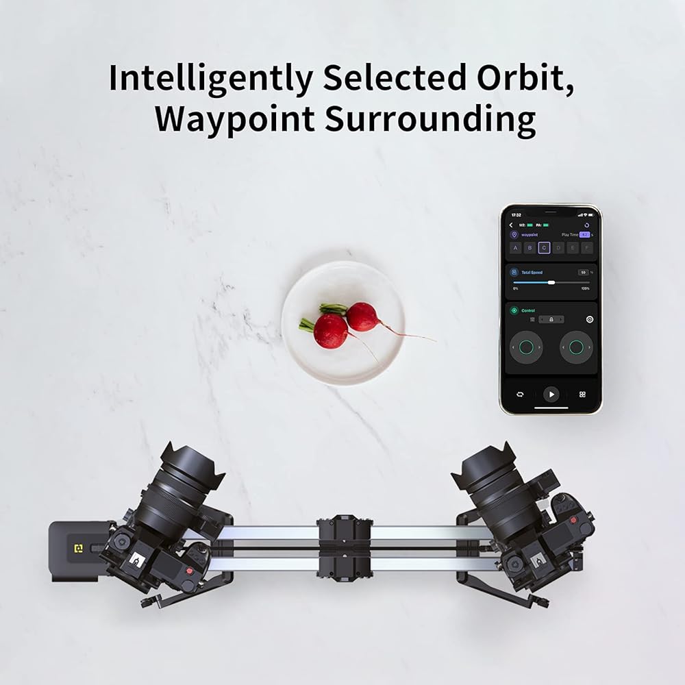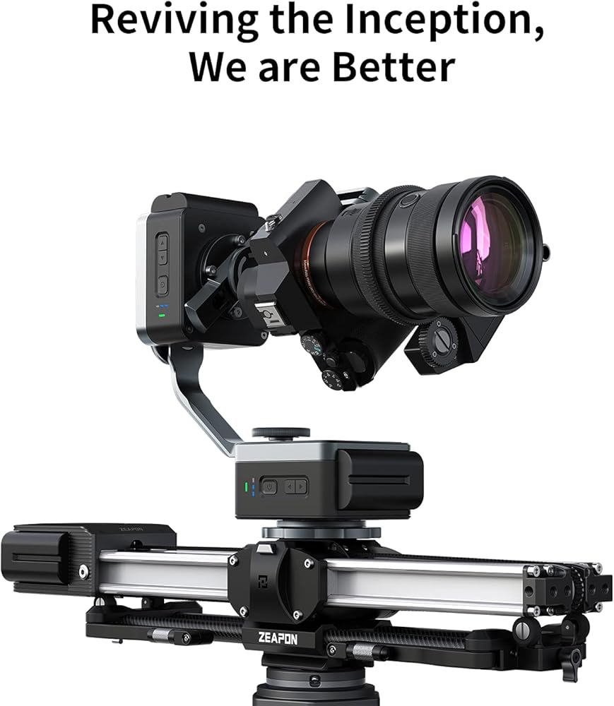 【Reviving the Inception, We are Better】After the start button is pressed, the camera can shoot by itself, and the picture must not be swayed up and down, left and right. The stabilizer can't meet these requirements, but the PONS pan head can. After you double click the operation buttons of the rail slider and the pan head, the camera can shoot automatically. All these features let you save more time and effort, and obtain better shooting.