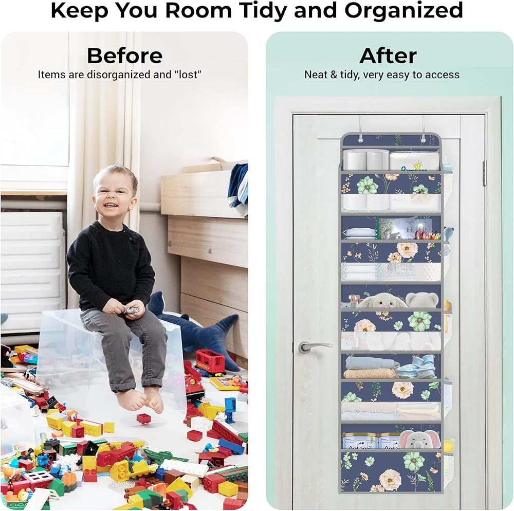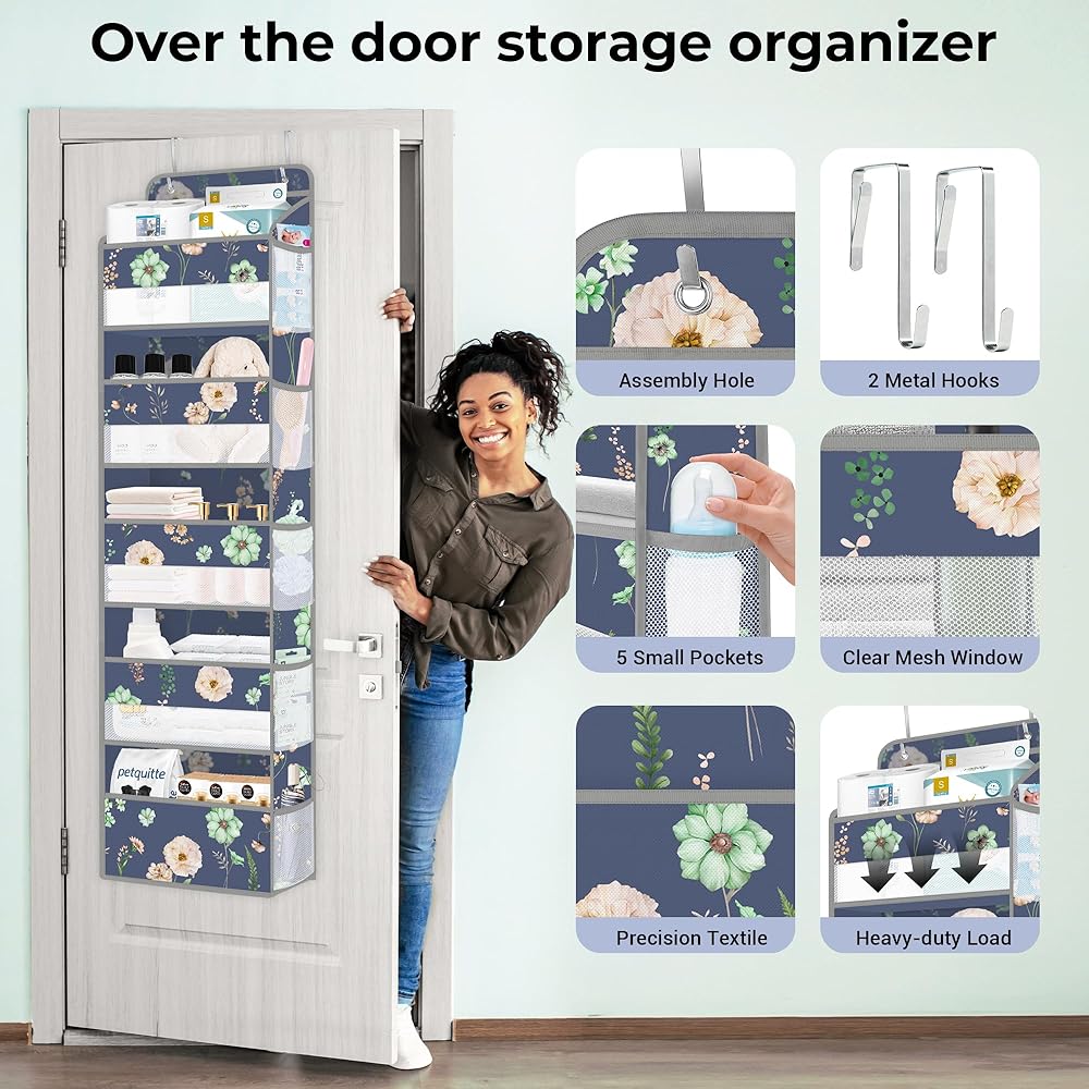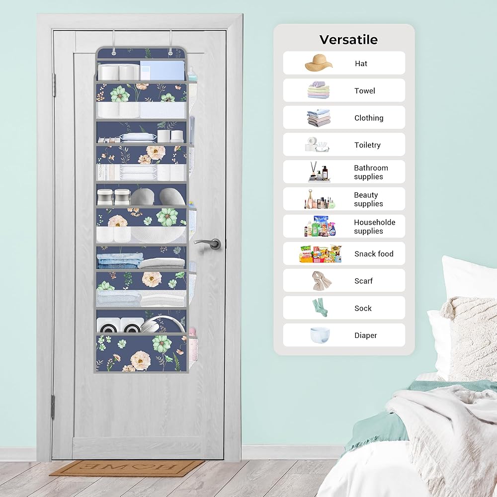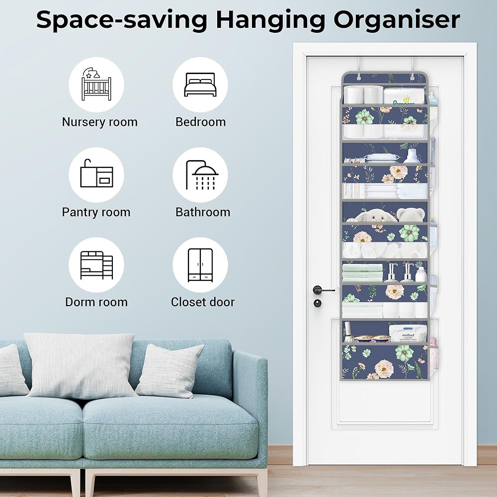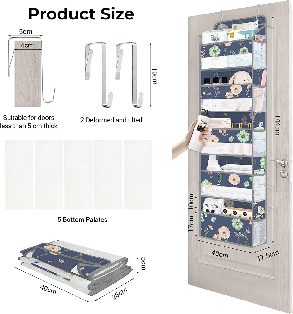 Enhanced Storage Space--- The door hanging storage maximise your under-utilised space behind the door for bedroom/bathroom/nursery room/caravans and so on. Design with pink flowers, make it more fascinating
