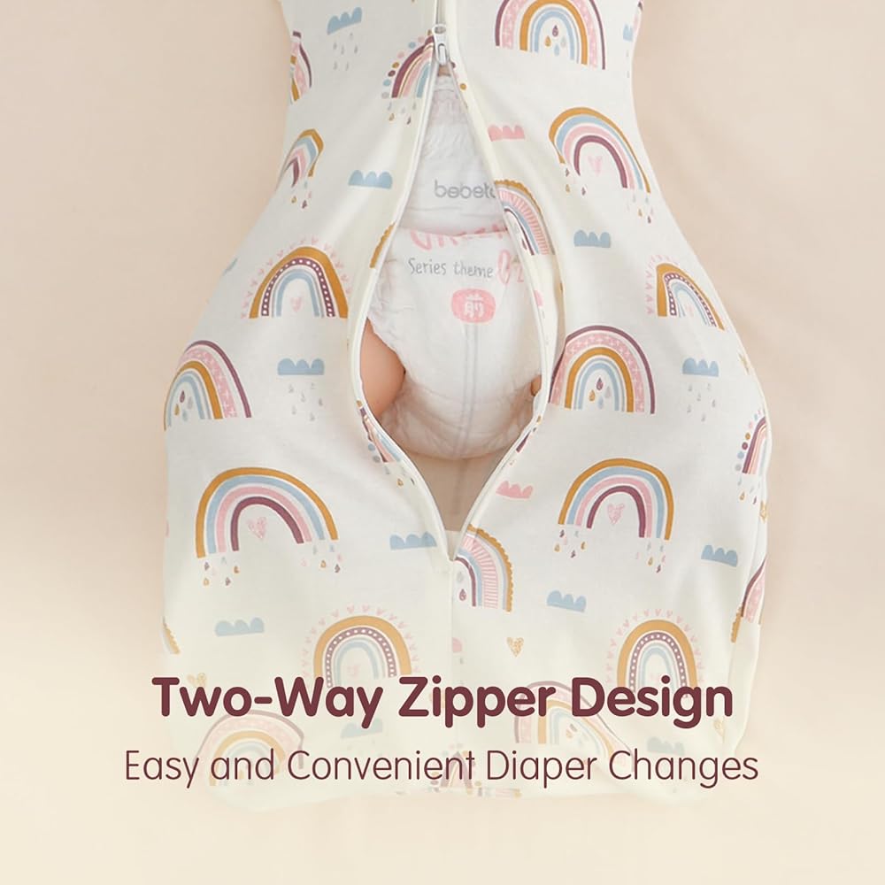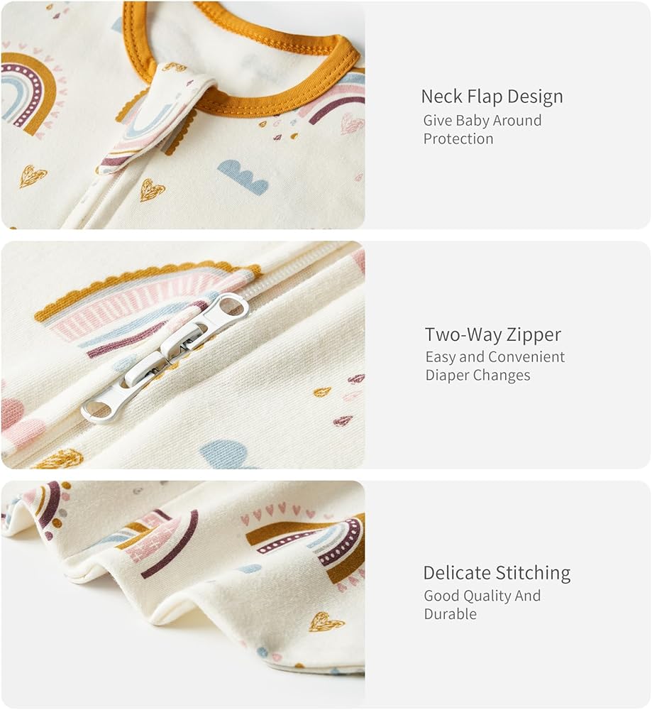 2 WAY ZIPPER DESIGN: Are you worried that the baby already fall asleep, but changing the diaper will wake the baby up? 2-Way zipper make it easy to change the diaper. Pull the zipper up from the bottom and change the baby's diaper so that it will not wake up the baby or catch the cold. The top zipper has the chin protection, which protect your baby's chin from touching the zipper.