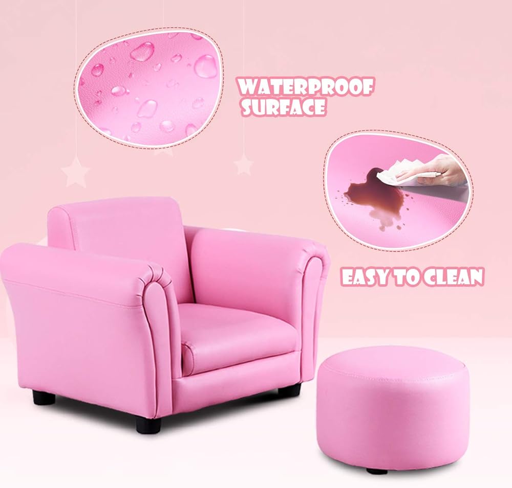 【Comfortable Sitting Experience】 Equipped with ergonomic backrest and double armrest, it is comfortable to sit on this children sofa. The matching footstool allows kids to have fun in a more relaxed position when watching TV, playing games and reading. In addition, the superior sponge with density of 20 will always keep the cushion soft.
