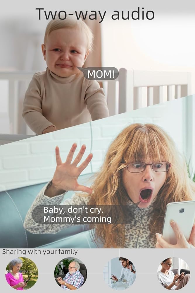 ◀2-Way Audio & Multiple Shared Views▶ ●The wifi security camera indoor built-in noise-proof mic & speaker, so you can clearly hear and talk with your family anywhere. It is compatible with Alexa & Google Assistant, allowing you to control the camera with voice commands. The camara para bebes supports multiple users (no limited account number) to share views via 24H smart app on iPhone and Android. With 4 simultaneous viewing screens & 24/7 Video Live Stream never miss any important moment