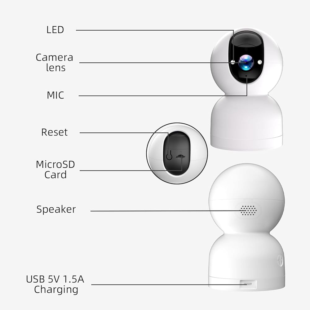 ◀Flexible Storage & Privacy Assurance▶ ●The wifi security camera indoor supports Micro SD Card (up to 128GB, not included) and Cloud Storage (7 days free trial, optional) for convenient access to recordings on your smartphone. Your privacy is ensured with an encrypted SD card and cloud videos, accessible exclusively through your mobile device. It also supports Onvif, you can easily connect to your NVR security camera system which supports Onvif