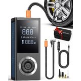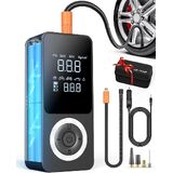 Tire Inflator Portable Air Compressor, 150 PSI Smart Air Pump for Car Tires with Digital Pressure Gauge, LED Light, 12V Car Power Adapter, Storage Box