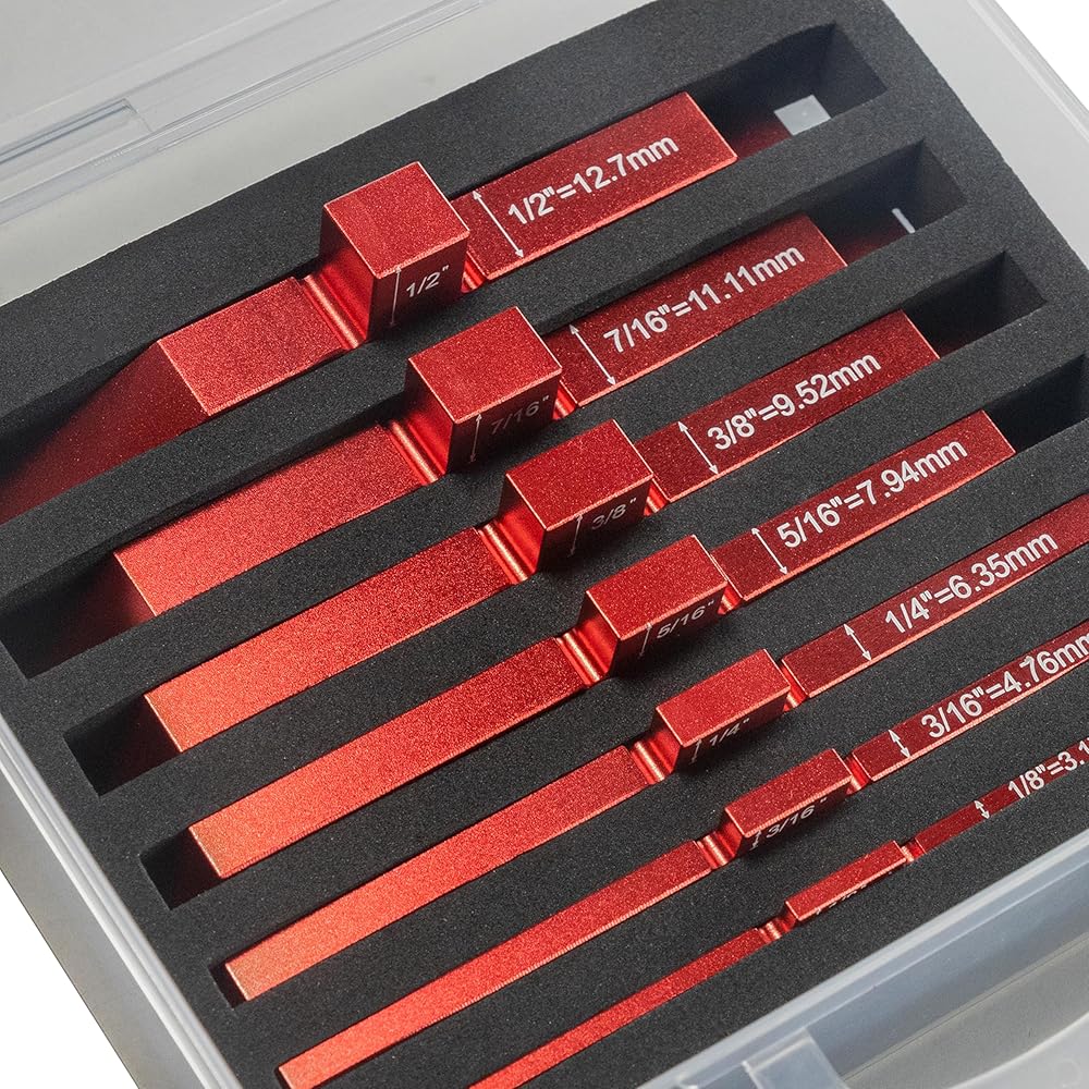 The Precision Setup Gauge Blocks Set offers unmatched accuracy for woodworking, metalworking, and other precision tasks. These 14 aluminum alloy blocks come in various sizes. Laser-etched labels ensure easy identification. Whether you're aligning router bits, adjusting saw blades, or fine-tuning machinery, these gauge blocks simplify the process. Plus, the included fitted case ensures safe storage and easy transport. Elevate your precision work with this versatile set!
