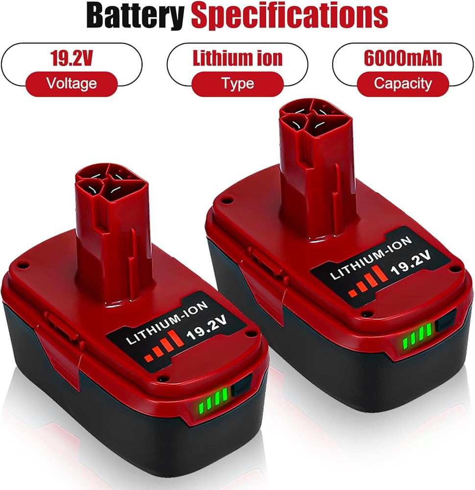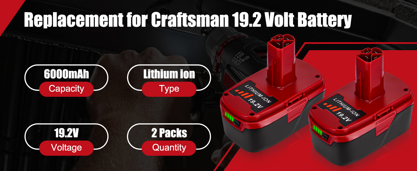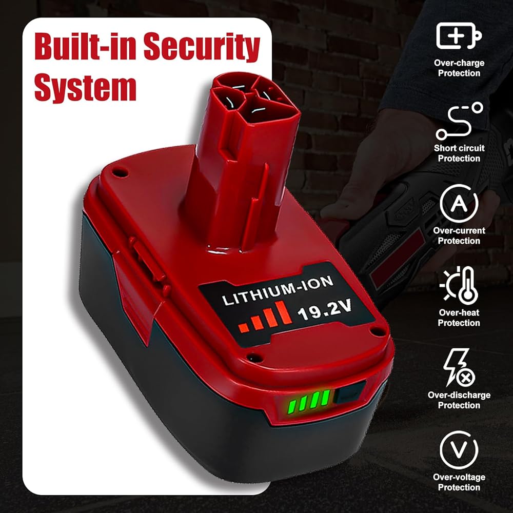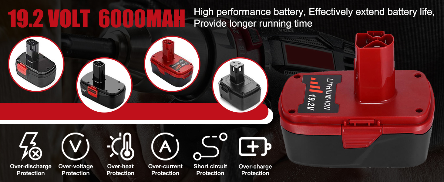 【 Large-capacity】6.0Ah large-capacity lithium battery can be charged and discharged more than 500 times generally according to different electrochemical systems. And the batteries has a long service life, which is more than twice that of ordinary batteries. (Only craftsman 19.2v lithium charger can charge this battery!).
