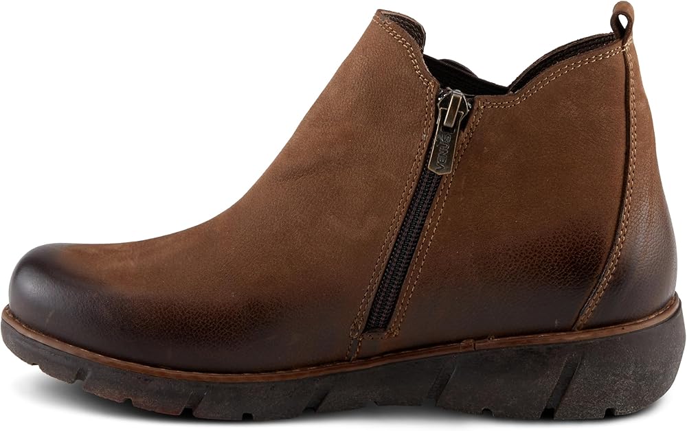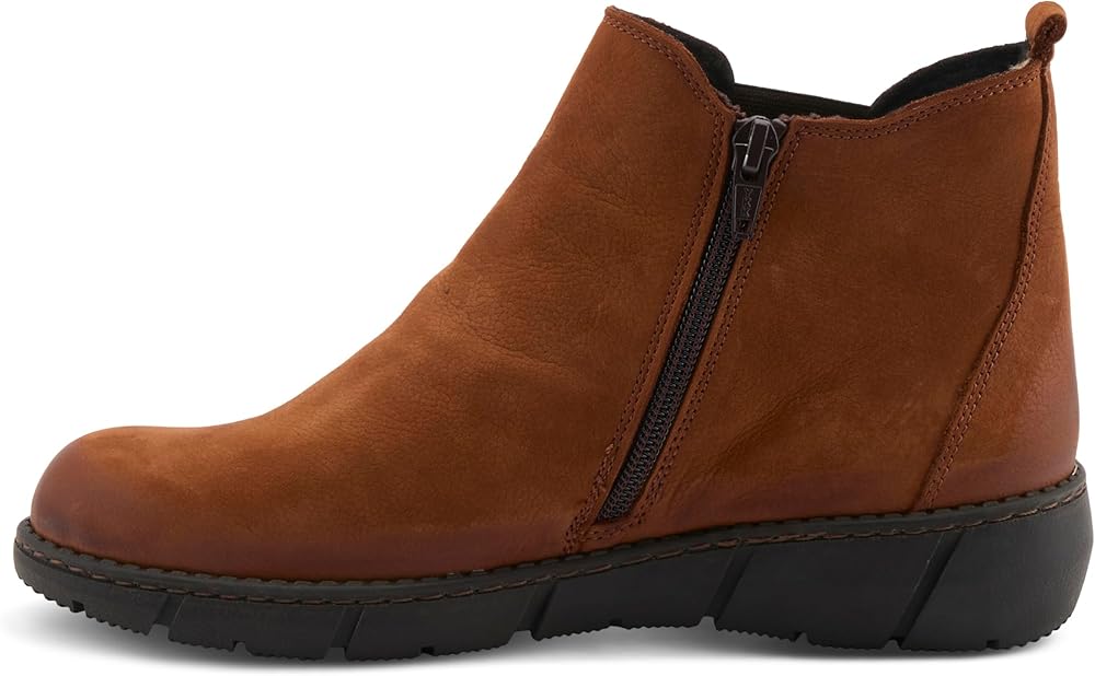 Experience the ultimate in style and comfort with our ultra-comfortable bootie, seamlessly blending fashion and coziness for everyday wear. Accented with circular leather pieces that cover the elastic gore, this bootie provides ease with every step. Crafted from premium nubuck leather enhanced with a rich burnished finish that acquires a natural patina over time. Featuring a convenient inside zipper, slipping into these booties is easy, ensuring hassle-free and quick wear. The cushioned insole with arch support can be removed, making it easy to customize your comfort level or replace it with your own orthotics. The rugged, rubber sole provides excellent traction and support so you can walk with confidence.