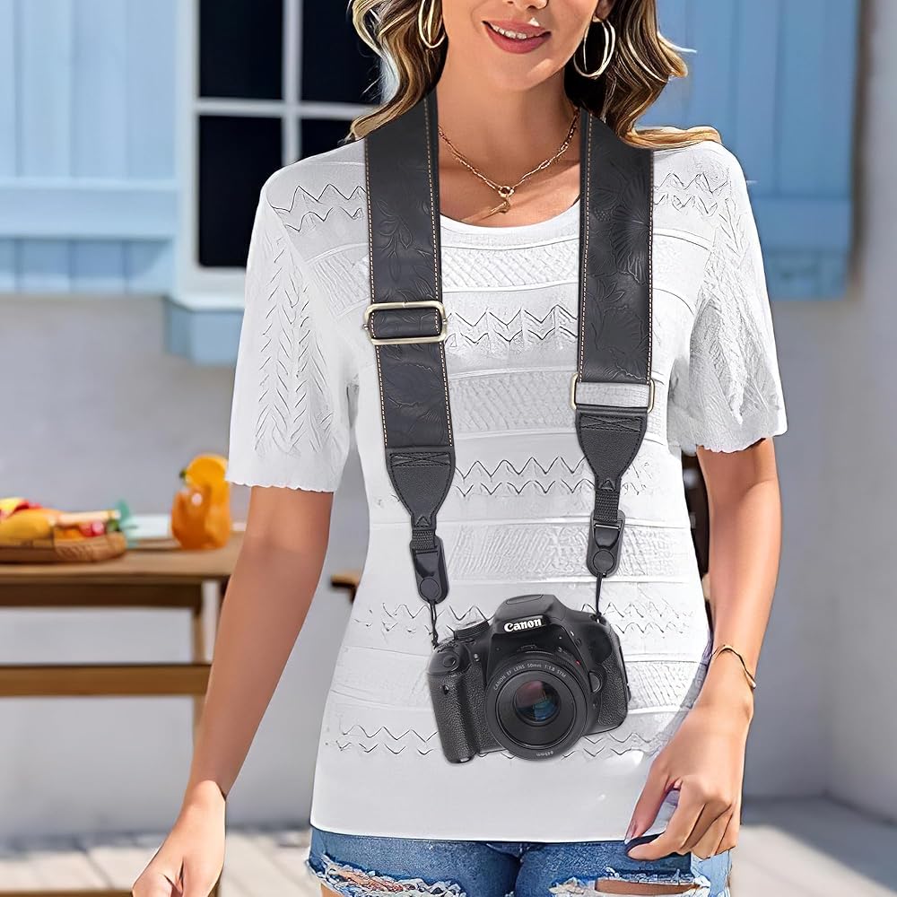 📷 PREMIUM AND UNIQUE CAMERA STRAP: Camera leather neck strap fits literally any camera.