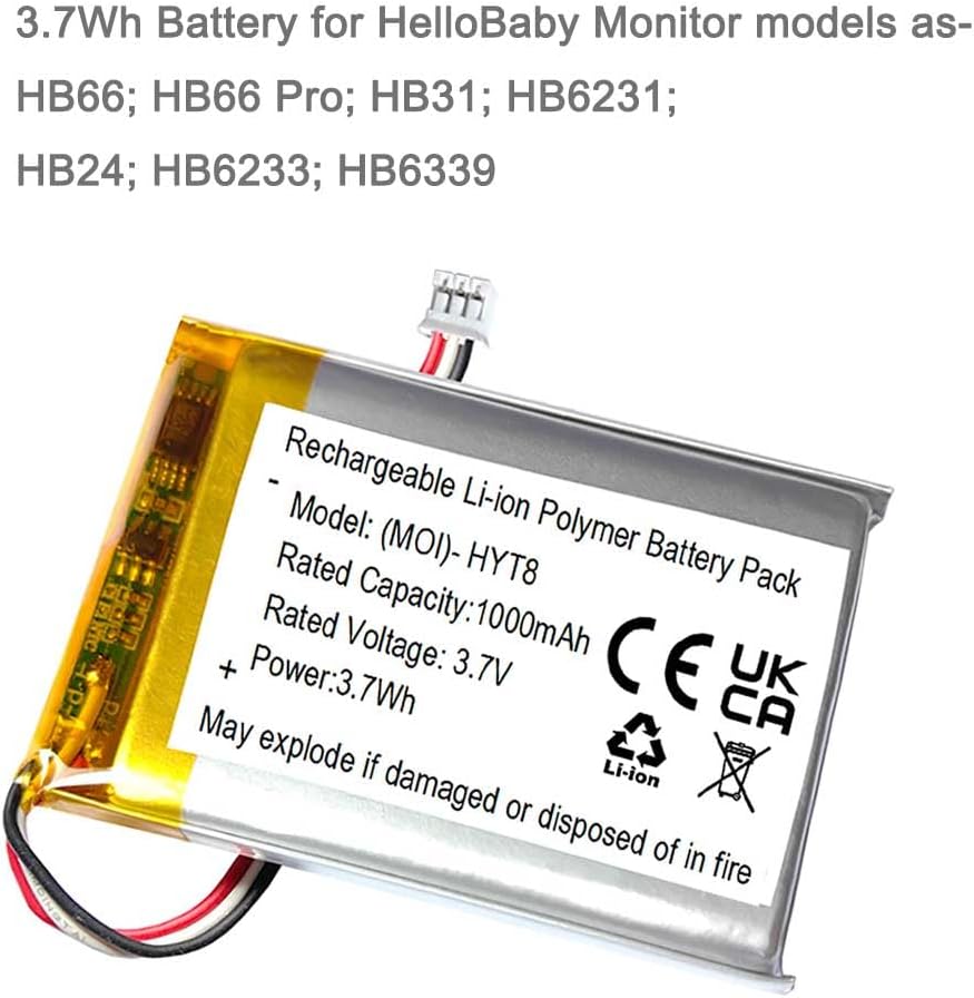Hb66 battery for HelloBaby HB6231battery replacement, HB24 battery replacement, HB6233 battery replacement, HB6339 Video Baby Monitor battery replacement,