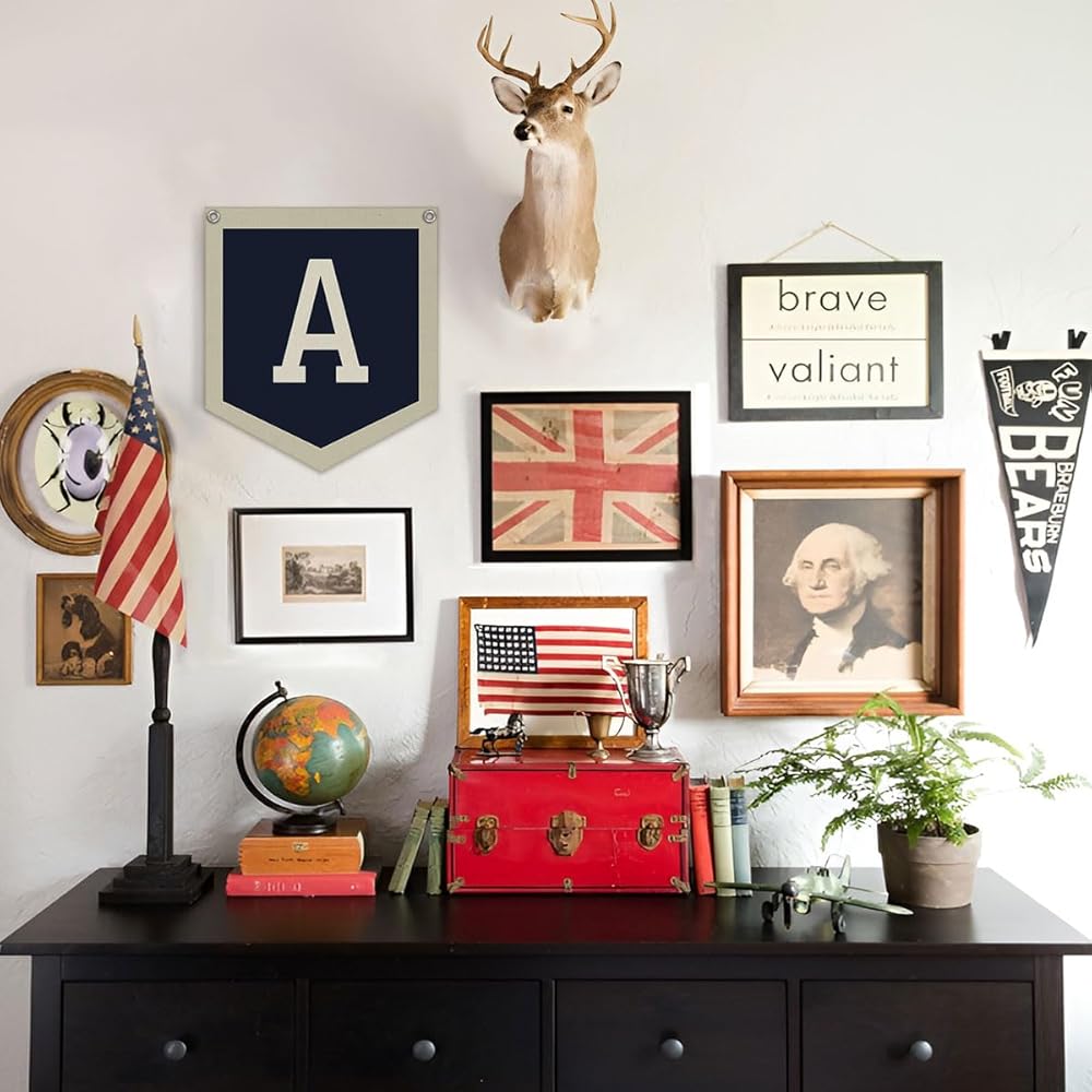 Lacama Vintage Name Pennant Flag Banner for Nursery Toddler Bedroom Playroom Kidsroom,Personalized Baby Gifts,Toddler Boys Room Decor, Nursery Wall art, Baby Boy Christmas Gifts,Initial Monogram M 12x14 in