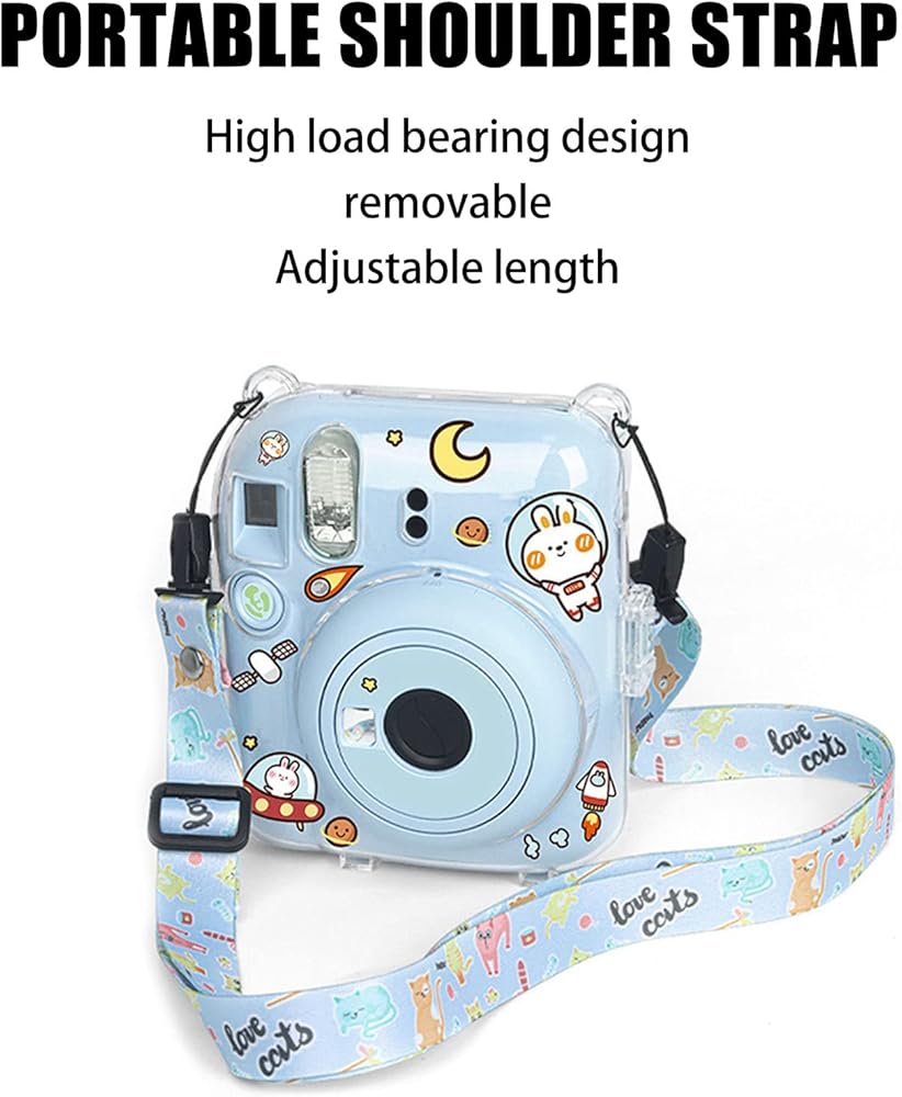 Jectse For Mini 12 Case, Instant Camera Case Protective Camera Case with Shoulder Strap and Sticker, Protective Clear Case for Mini 12 Instant Camera (Blue)