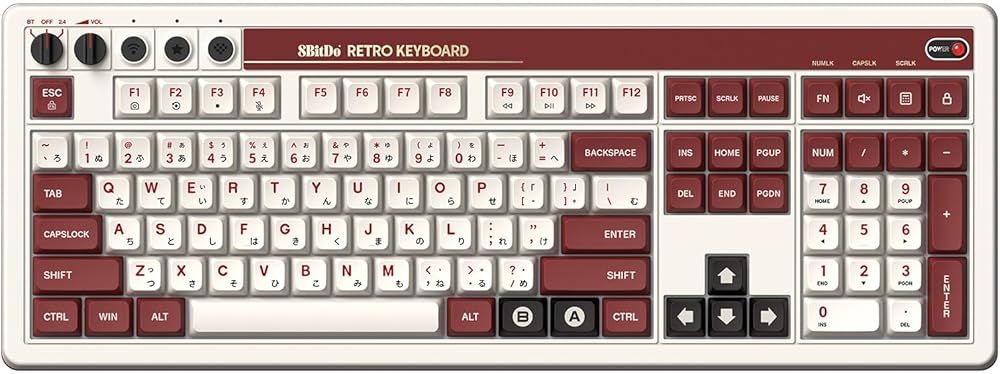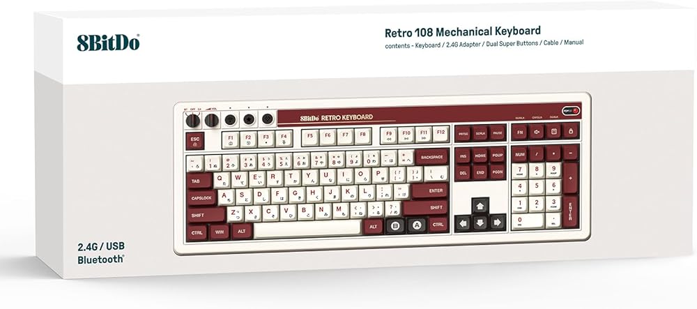 8BitDo Retro 108 Mechanical Keyboard with 108 Keys and Integrated Numpad, Bluetooth/2.4G/USB-C Hot Swappable Wireless Gaming Keyboard for Windows and Android - Fami Edition