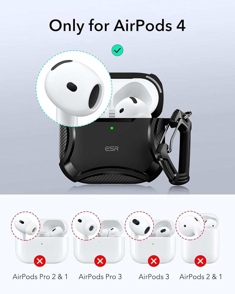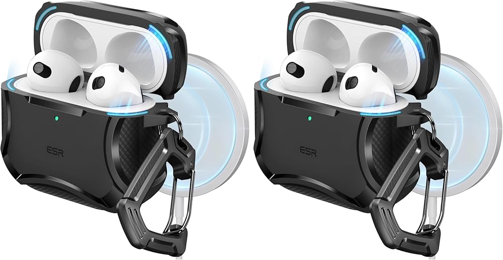ESR for AirPods 4 Case, Compatible with AirPods 4th Generation Case (2024), Compatible with MagSafe, Powerful Drop Protection, Magnetic Lid, Cyber Series, Black (Pack of 2)