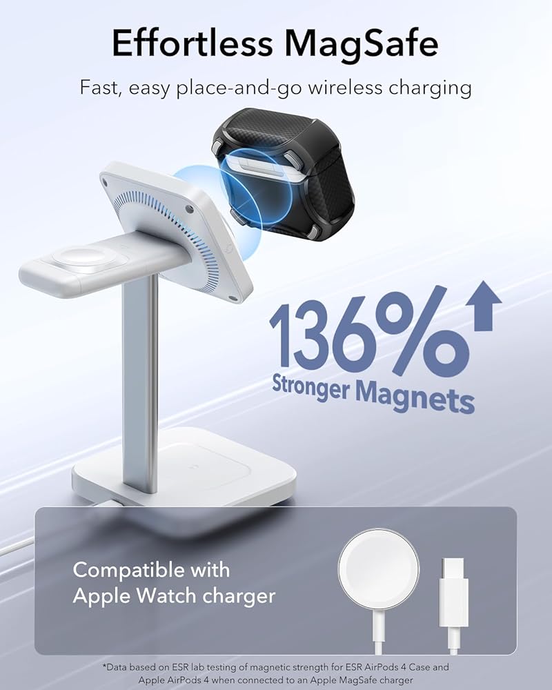MagSafe Ready: strong magnets in the back of the case ensure a secure lock on MagSafe chargers, letting you enjoy tap-and-go wireless charging for your earbuds