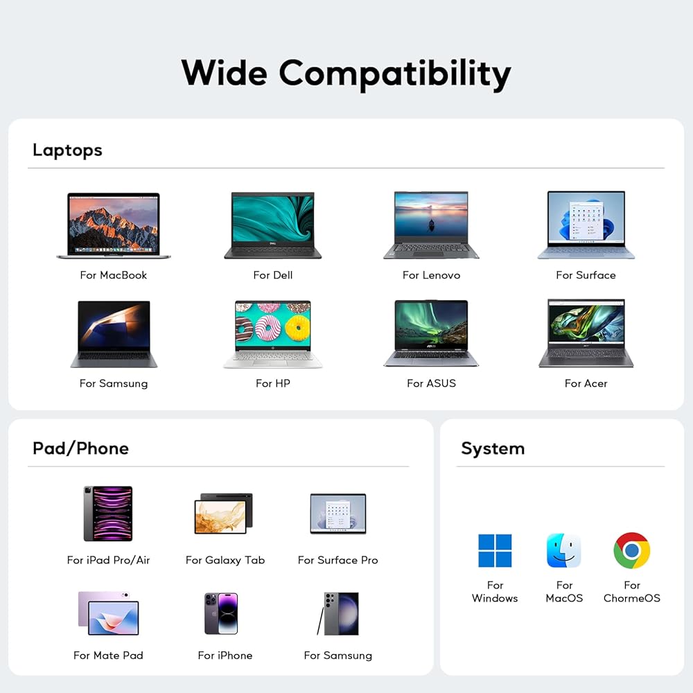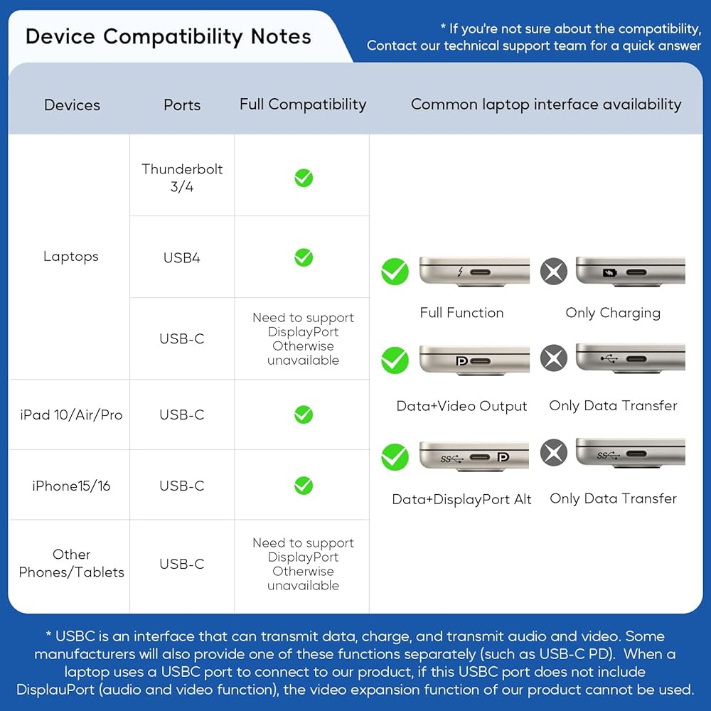 GIGABIT ETHERNET & PD CHARGING & WIDE COMPATIBILITY - The RJ45 Gigabit Ethernet port provides stable, high-speed wired internet, to download movies faster and enjoy gaming without lag. while the USB-C PD port supports up to Max 100W input & Max 85W safe output into your laptop. The laptop usb-c dock is compatible with most Thunderbolt 4/3, USB4, and full-featured USB-C Windows / ChromeOS laptops(support Power Delivery, Data Transfer and Display Alt Mode). ★NOTE: It is recommended to use a power greater than 65W to ensure stable power input for your Macbook/Laptops.