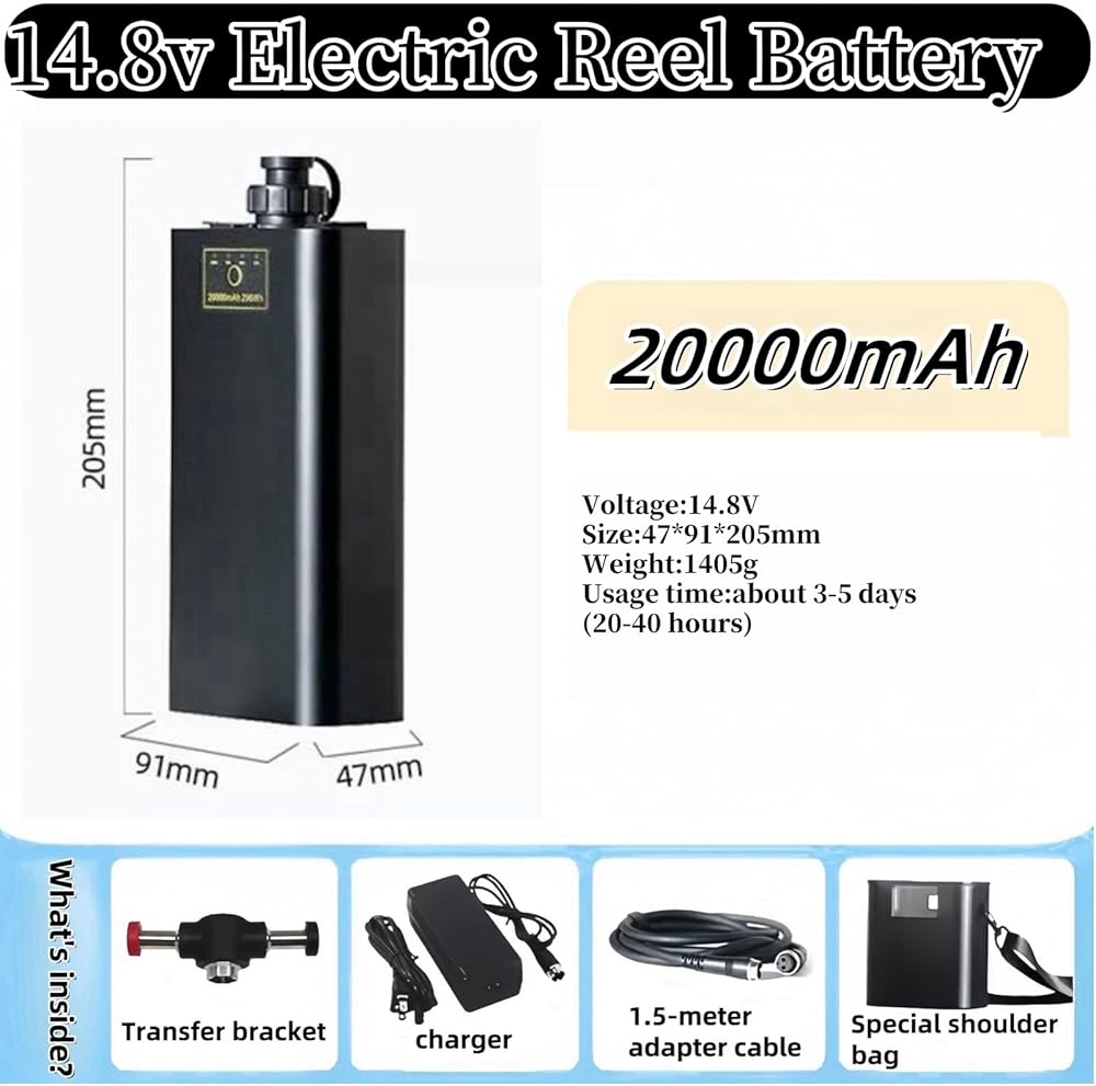 UNIVERSALITY:Compatible with 14.8V motorized reels from various manufacturers like Daiwa, Tanacom, Seaborg,and Leobritz. Note that a cord with a connector is needed to link the battery to the motorized reel