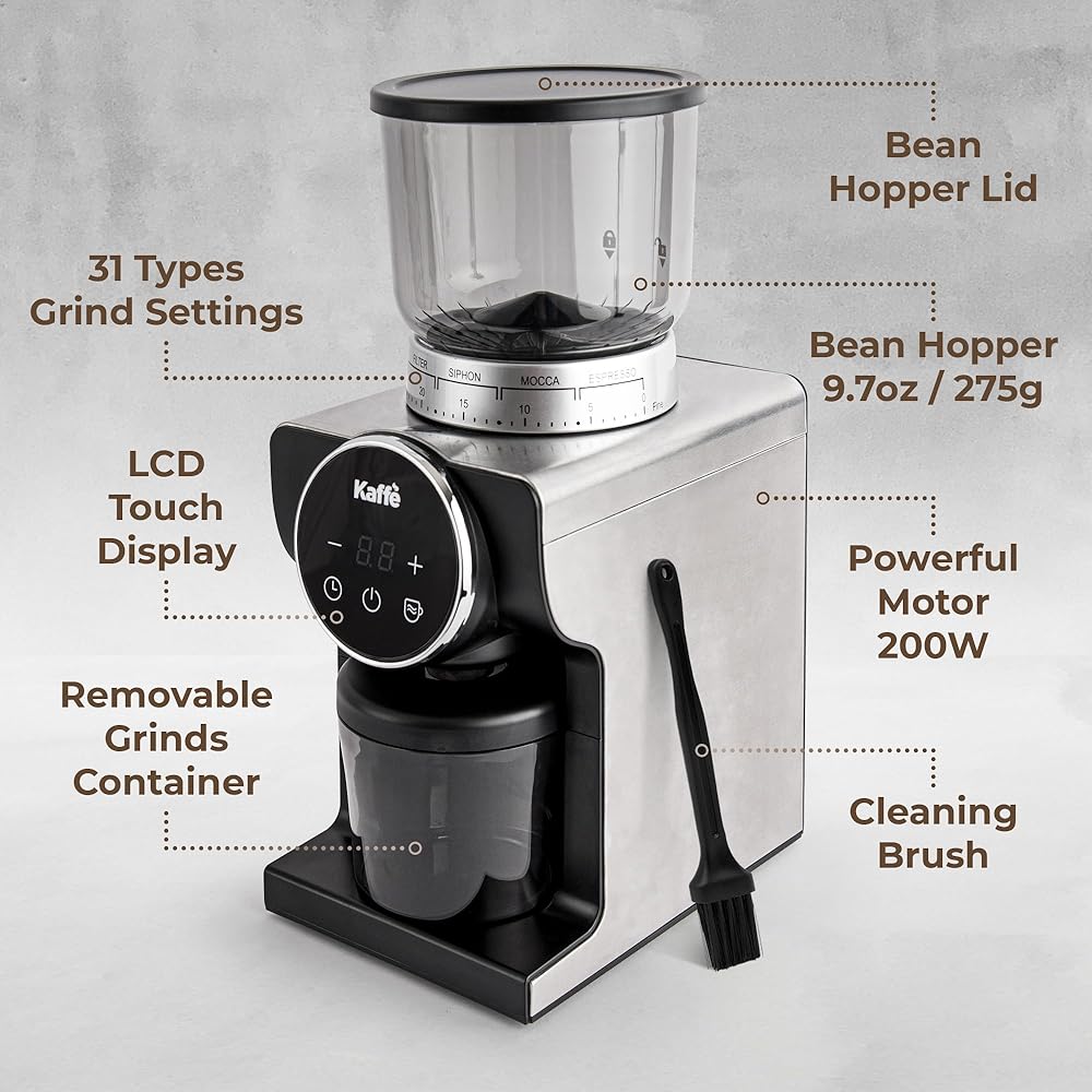 🔝 BETTER THAN BLADE & FLAT BURR GRINDERS - Conical burr grinders produce the most consistent grind, beating blades and even flat burrs, allowing you to adjust the coarseness to your preferred brewing method. Cleaning Brush included!