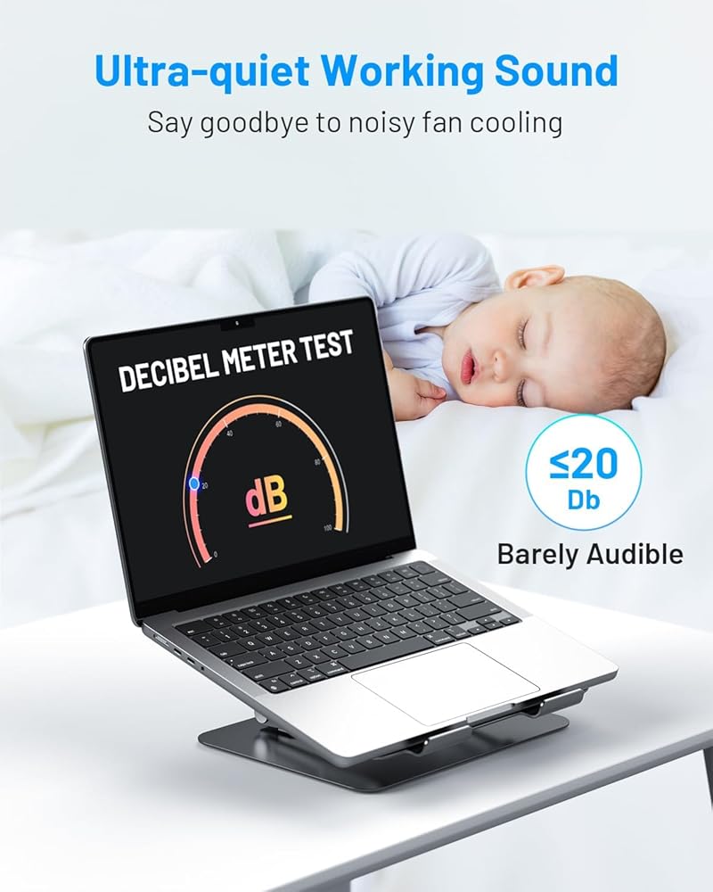 Laptop Cooling Pad with Detachable Fan & Cooler, Adjustable Height & Angle, 360 Rotation Base, Ultra-Quiet, Carbon Steel Framework for MacBook, ASUS, Dell 10-16" Laptop for Tablet, DJ Mixer