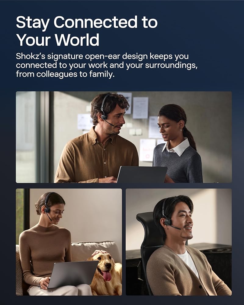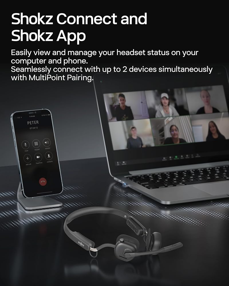 Office-Friendly Features - Mute calls with a dedicated mic button, communicate you're busy with an LED indicator, and manage Multipoint Pairing with up to 2 devices with Shokz Connect and the Shokz App.