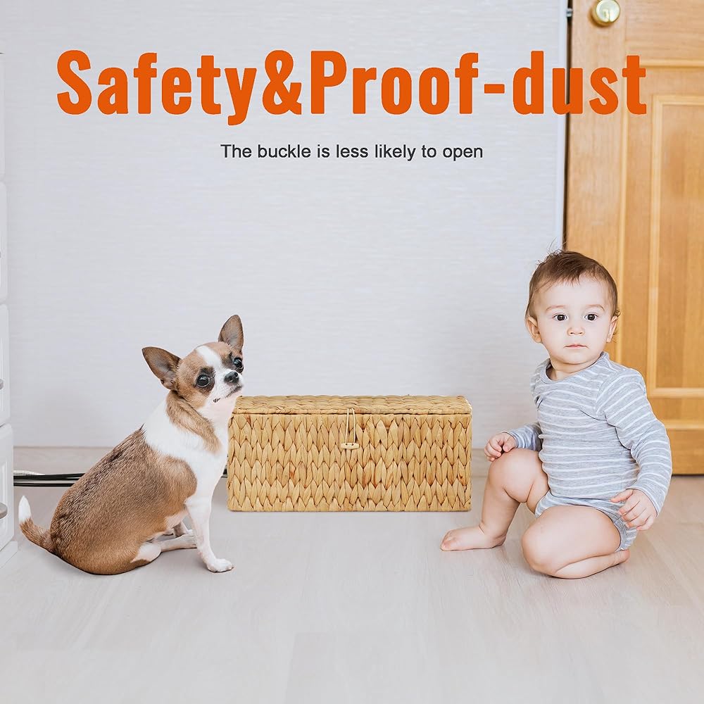Posprica Cable Management Box with Lid, 2Pack Handwoven Real Water Hyacinth Cord Hider Organizer Boxes, 2 Side Open Slots Storage Box to Hide Cords Power Strip for Desk, Floor, Office