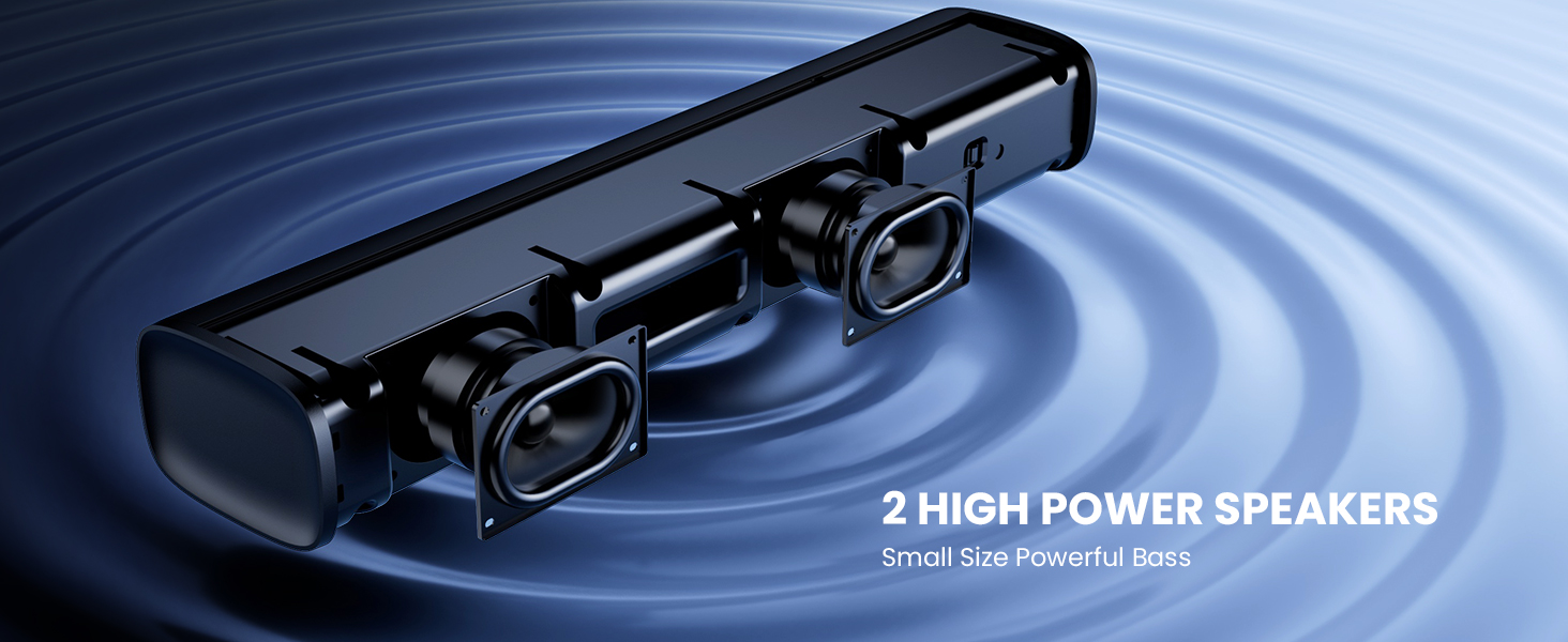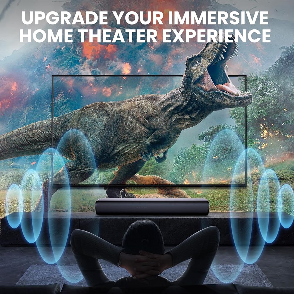 ✅Space-Saving Elegance: Crafted with efficiency in mind, our compact tv soundbar boasts a slender 17-inch frame, making it an ideal fit for confined areas. Its sleek, contemporary design adds a touch of refinement to any space, effortlessly complementing your decor. Whether mounted on the wall or placed on a desktop, it optimizes space utilization without compromising on style.