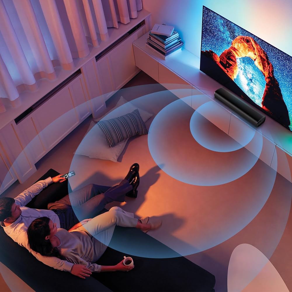 ✅Total Immersion: Step into the heart of the action with our 50W TV Sound Bar, designed to envelop you in a 360° soundscape. With two meticulously tuned drivers, every sound comes to life, transporting you into the very midst of your favorite movies and shows, making you feel like an integral part of the storyline.