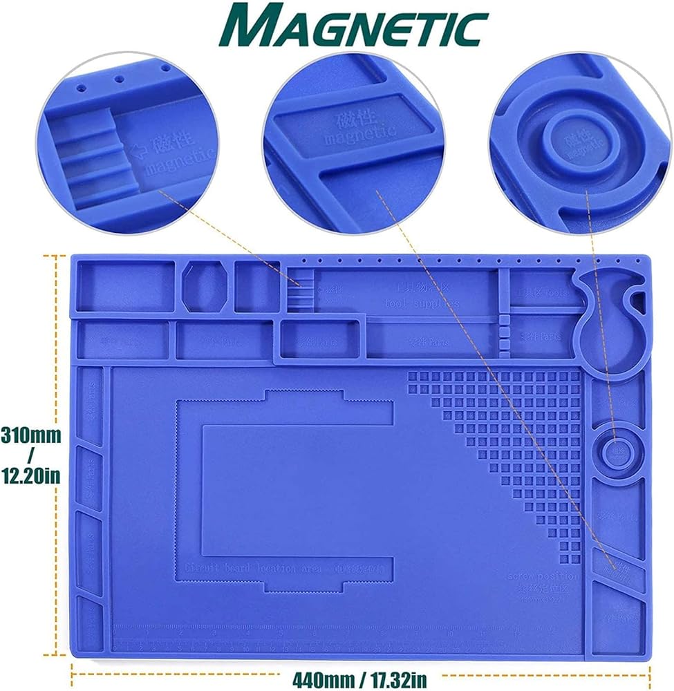 YIHUA M180 Anti-Slip Magnetic Insulation 500℃ Heat-Resistant Silicone Work Mat for Soldering, SMD Rework, Mobile Phone, Laptop, Electronics Repair and DIY Size: 17.32 x 12.20 Inches (M180)