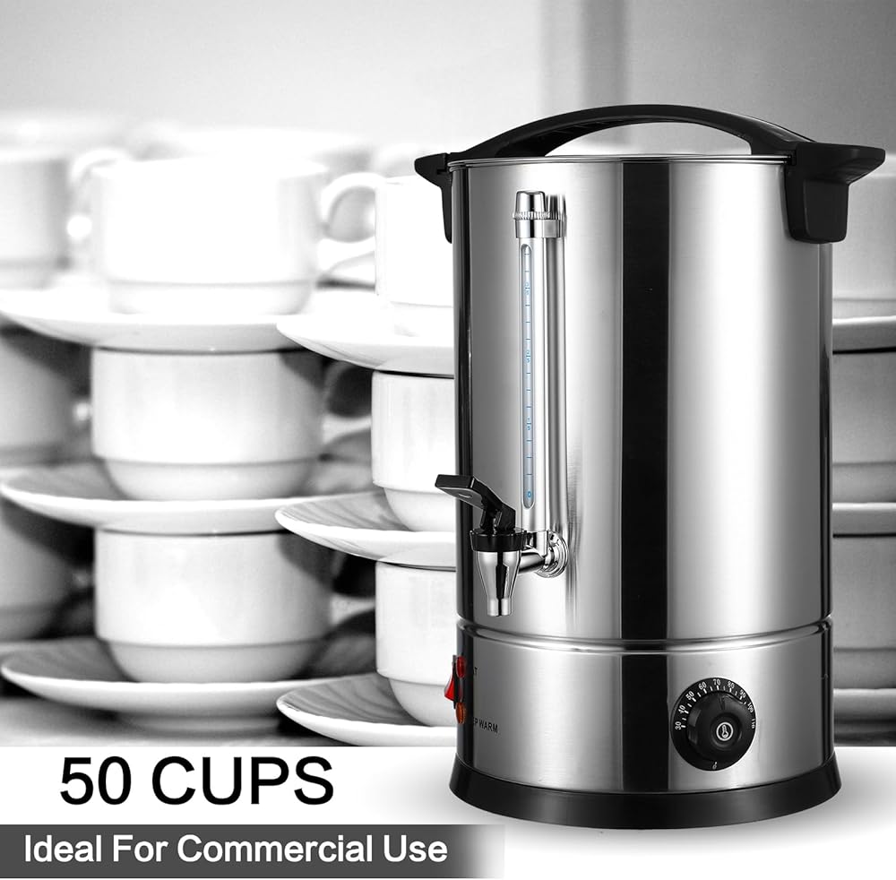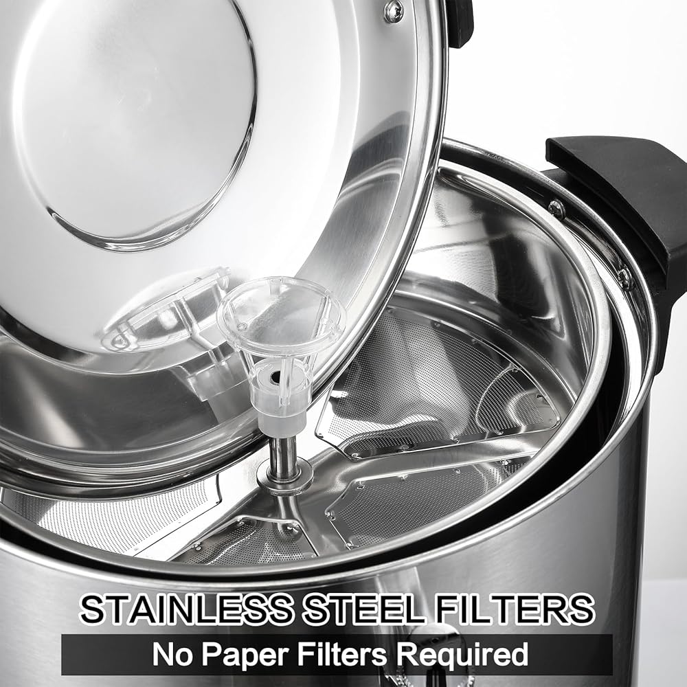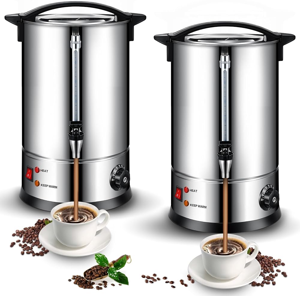 Features: The 50 cup commercial coffee urn is designed with liquid level markers and level viewing window, you can easily know when you need to refill, easy to fill and set up, which can provide enough for meetings or large gatherings of coffee. Our 8L percolator coffee urn can brew up to about 50 cups of 5 ounce coffee, ideal for brewing coffee for a group of people, suitable for commercial use, catering, offices, conference rooms, lounges, hotels, outdoor picnics, weddings, Christmas and other large party gatherings. Specifications: Material: stainless steel Color: as shown in the picture Capacity: 8L Package includes: 2 x Commercial coffee urns Warm notes: Please allow a little error on the size due to manual measurement. The color may exist a slight difference due to different screen displays.