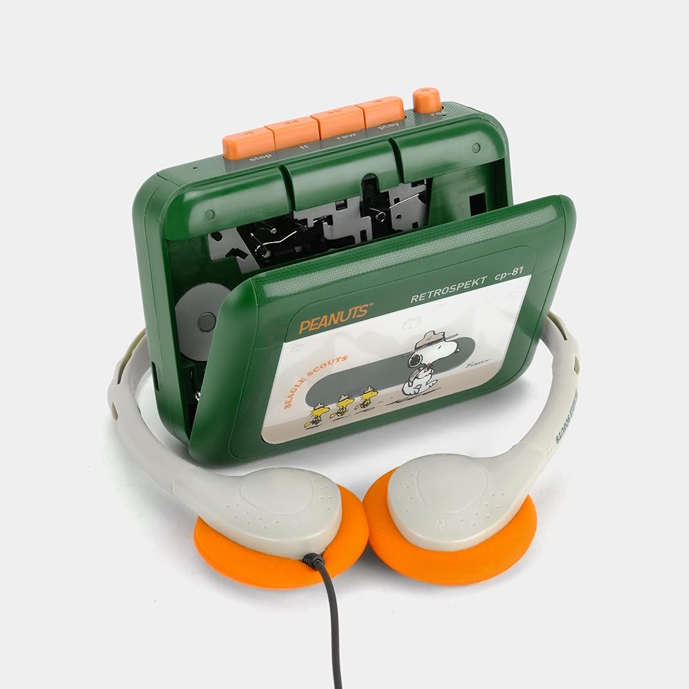 Created to honor the 50th anniversary of the Beagle Scouts' first appearance in the Peanuts comic strip in 1974, this portable cassette player features Snoopy and his group of eager outdoor explorers headed out for their next adventure. The CP-81 from Retrospekt is a completely new portable cassette player offering a classic cassette tape experience. It features a design aesthetic anchored by a Beagle Scouts-inspired color palette and has all the core cassette player functions. The player comes packaged with exclusive Beagle Scouts headphones featuring an adjustable headband and orange foam cushions.
