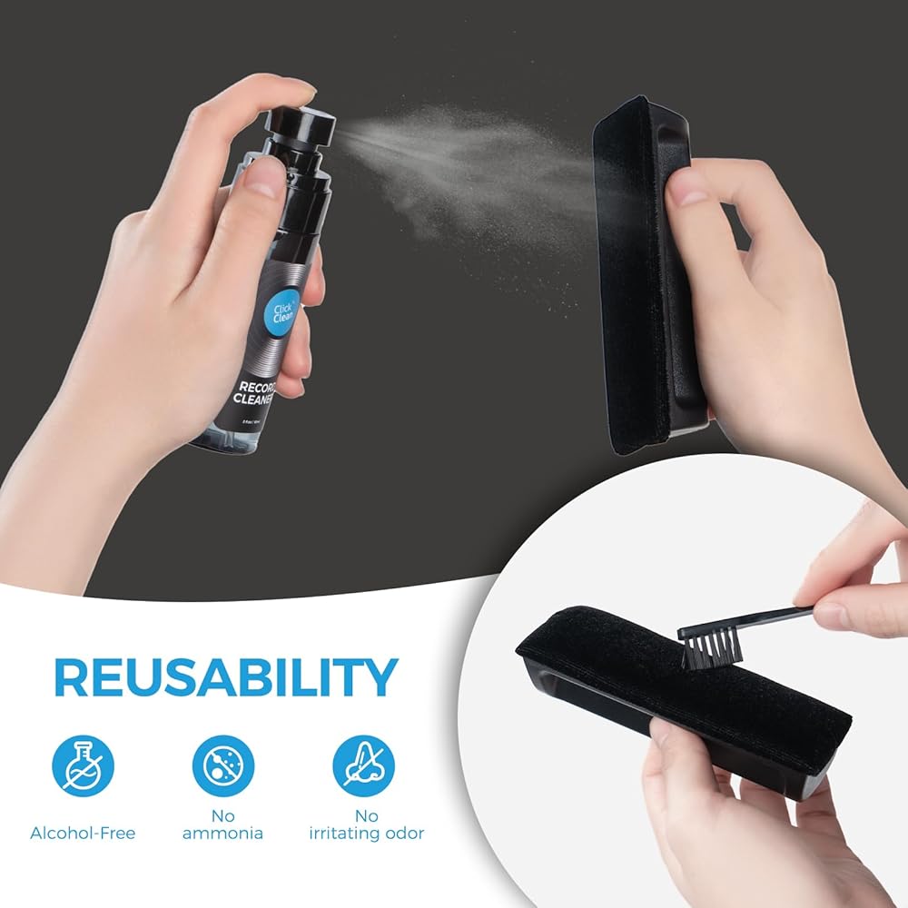 SAFE, NON-TOXIC & ENVIRONMENTALLY FRIENDLY: Alcohol-free, no-ammonia & no-odor cleaning solution protects the record from static, leaving no residue. With eco-friendly silicone, it is safe to use around children and pets.