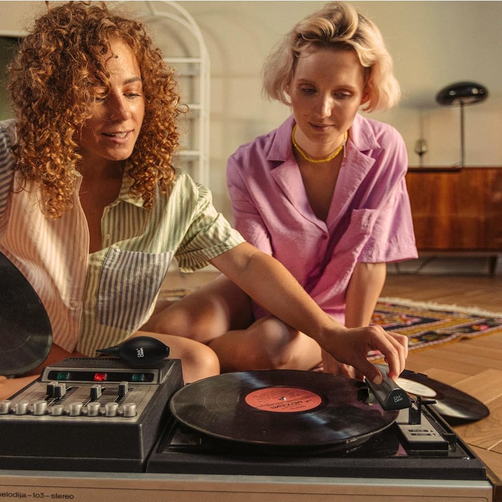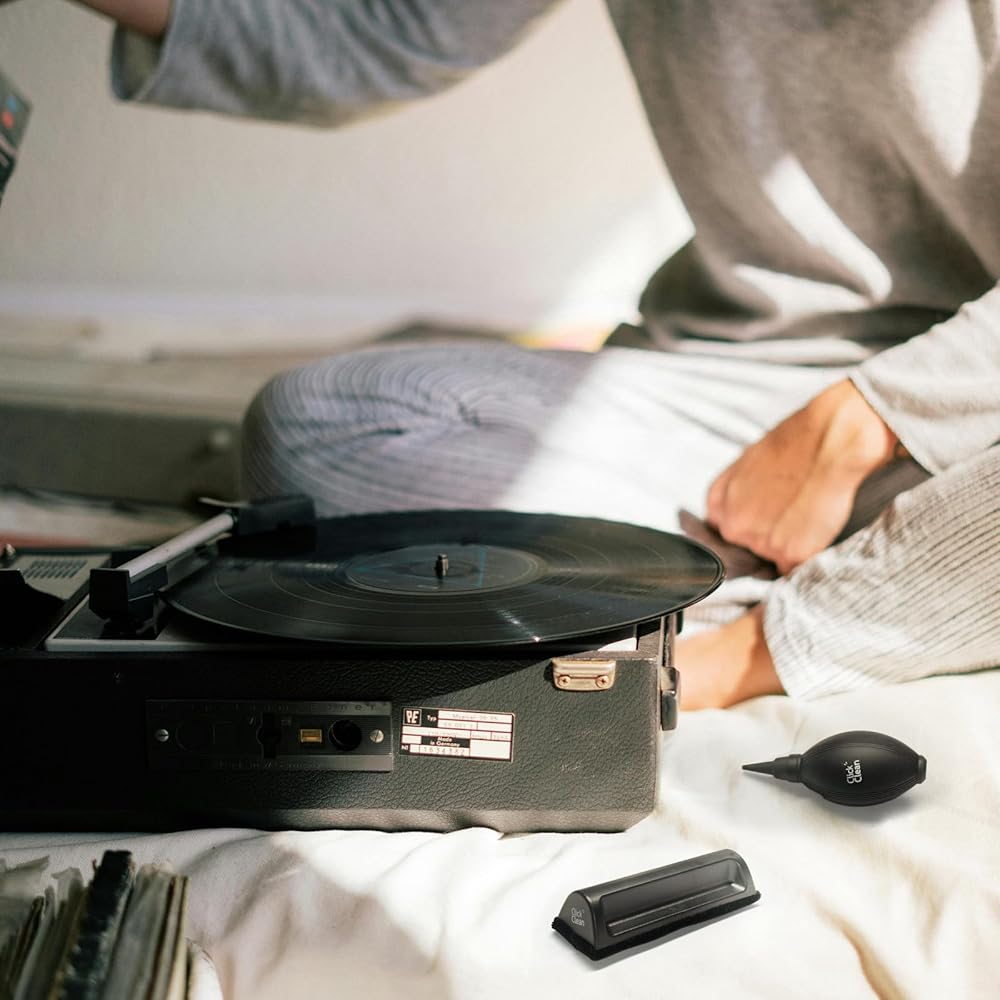 POWERFUL HANDHELD AIR BLOWER: Powerful airflow blows away hair, crumbs, food particles and other large stains, protects records from scratches, easy to use.
