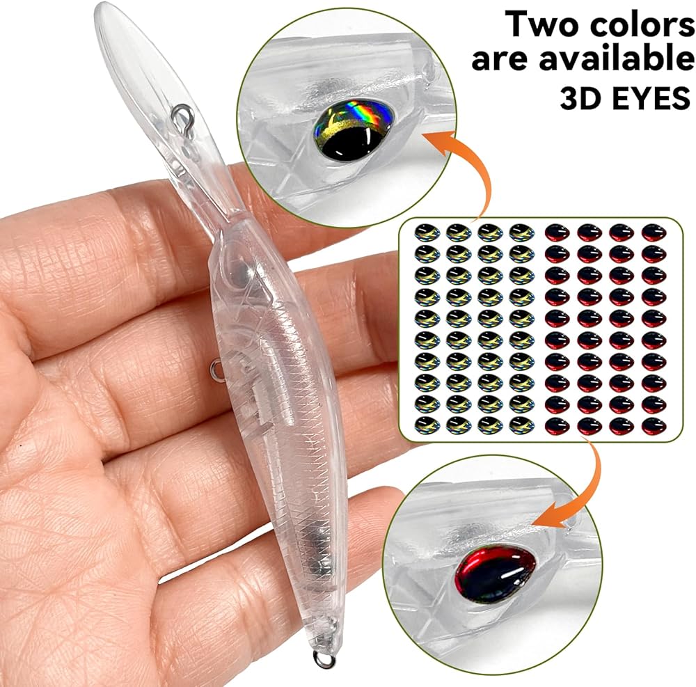MAKE YOUR OWN LURES: You will receive 20pcs blank fishing lures , all size is 0.18oz/5g and 20pcs 3D Fishing Eyes. The blank fishing lures unpainted are designed for fishing enthusiasts, design your own colors and patterns, enjoy the fun of DIY