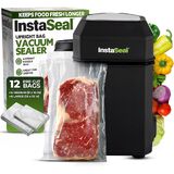 INSTASEAL VACUUM SEALER MACHINE: Get started with everything you need, including the space-saving Insta Seal upright food sealer vacuum sealer for food, user manual, and AC electrical cord, and a set of 12 pre-cut bags. The no-leak design prevents spills, while the airtight double seal locks in flavors.