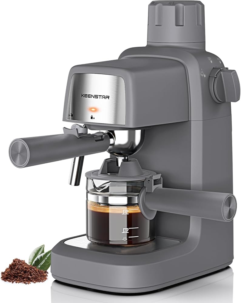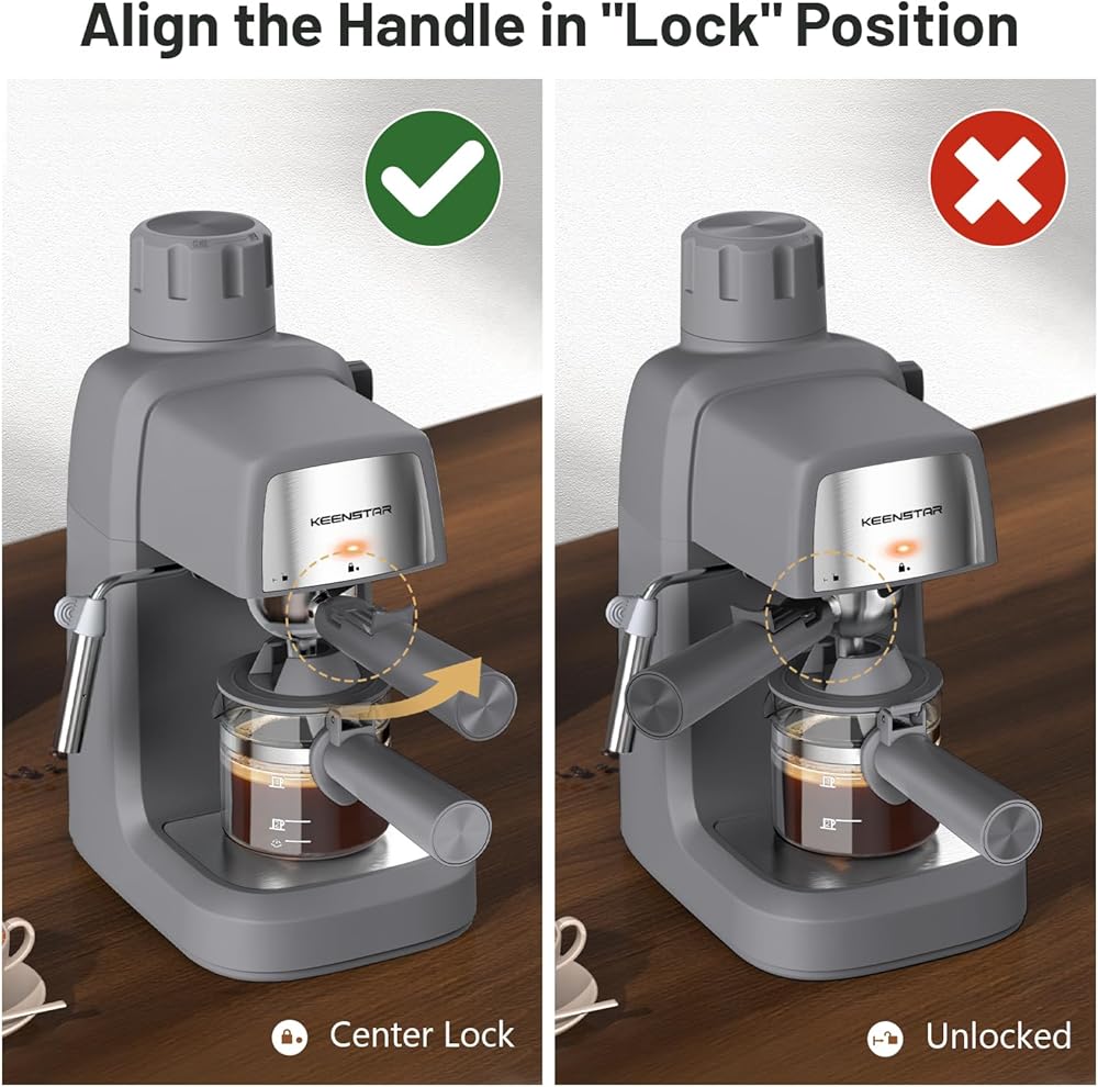 Fast Brewing Technology: Advanced heating technology makes water quickly heat to the right temperature. Keenstar 3.5 bar pressure coffee maker can make 1-4 cups (240ml) of coffee within 2 minutes. Easy-pour glass cup is clearly marked to serve the perfect amount every time and delivers a truly rich espresso in seconds.