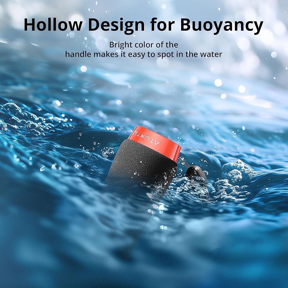 Never Lose Your GoPro: The ATUMTEK Waterproof Floating Hand Grip keeps your camera afloat, providing peace of mind during water sports activities like deep-sea diving, snorkeling, and surfing. Its bright orange color ensures easy spotting and retrieval, so you can capture your underwater adventures worry-free. The grip also comes with a high-quality wrist strap for extra security.