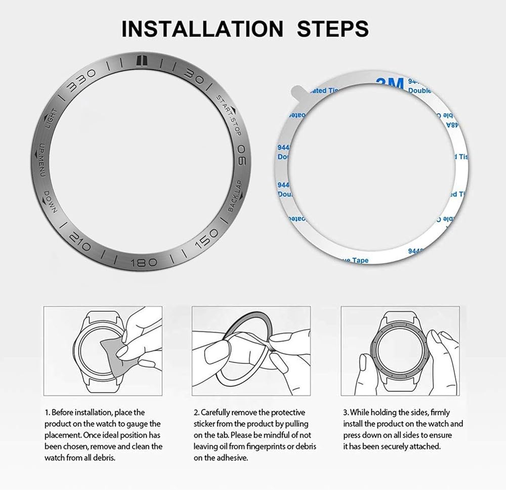• Easy install and Removal -- the adhesive on the bezel allows easy attachment and removal of the styling. The attachment surface has an adhesive tape. It doesn't fall off easily.( Please Press hard the watch bezel and Don't rotate and move until after 30 minutes)