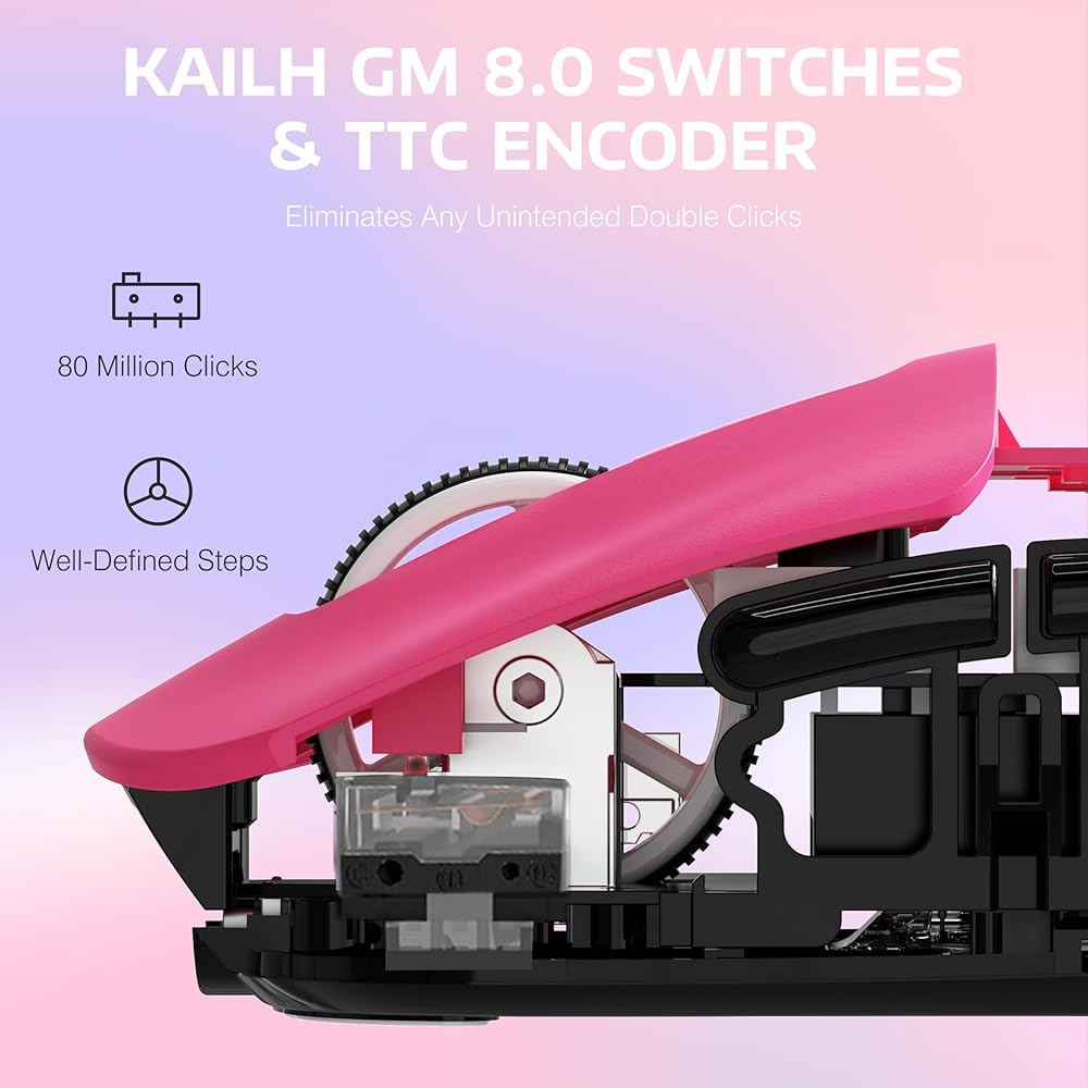 【Kailh GM8.0 Switch & TTC Encoder】By using the high-end Kailh Black Mamba GM8.0 Micro switches, every click of X3 is featured with crispy sound, fast rebound and quick trigger, and it's 80 million times click lifespan can ensure a durable and stable performance. It is also equipped with a TTC scroll wheel encoder which can provide a more precise positioning. All of this ensures you get excellent tactility in every touch of the mouse.