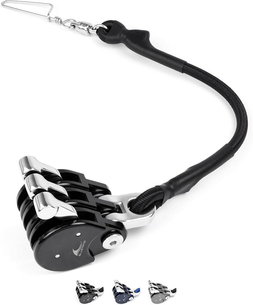 BLUEWING Blue Water Outrigger Halyard Line Lock Pulley Single/Double/Triple/Quad Aluminium Alloy Fishing Line Lock Pulley with Stainless Steel Snap Swivel for Offshore Fishing